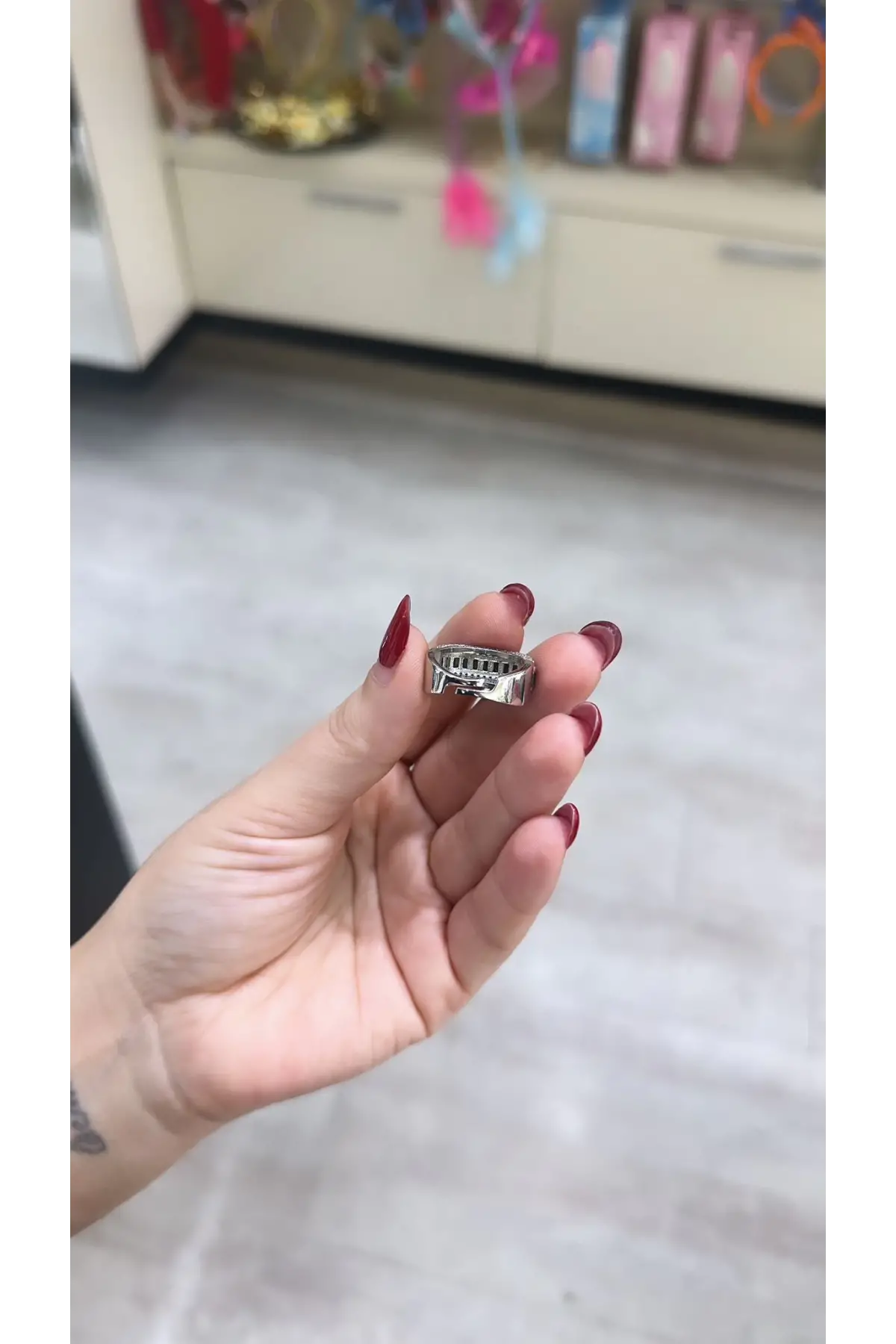 925 Ayar Gümüş Mazonite Kare Taşlı İthal Yüzük