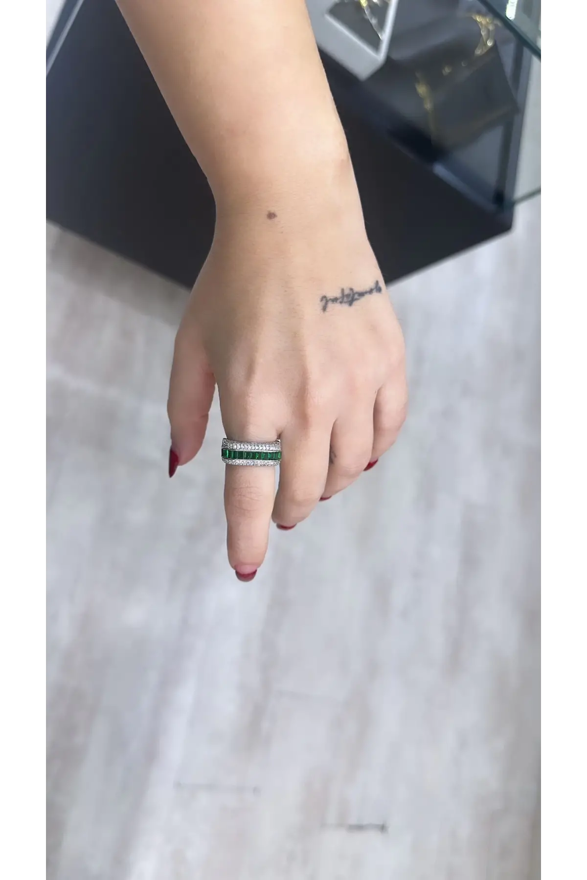925 Ayar Gümüş Yakut Taş Yeşil Kenar Taşlı Yüzük