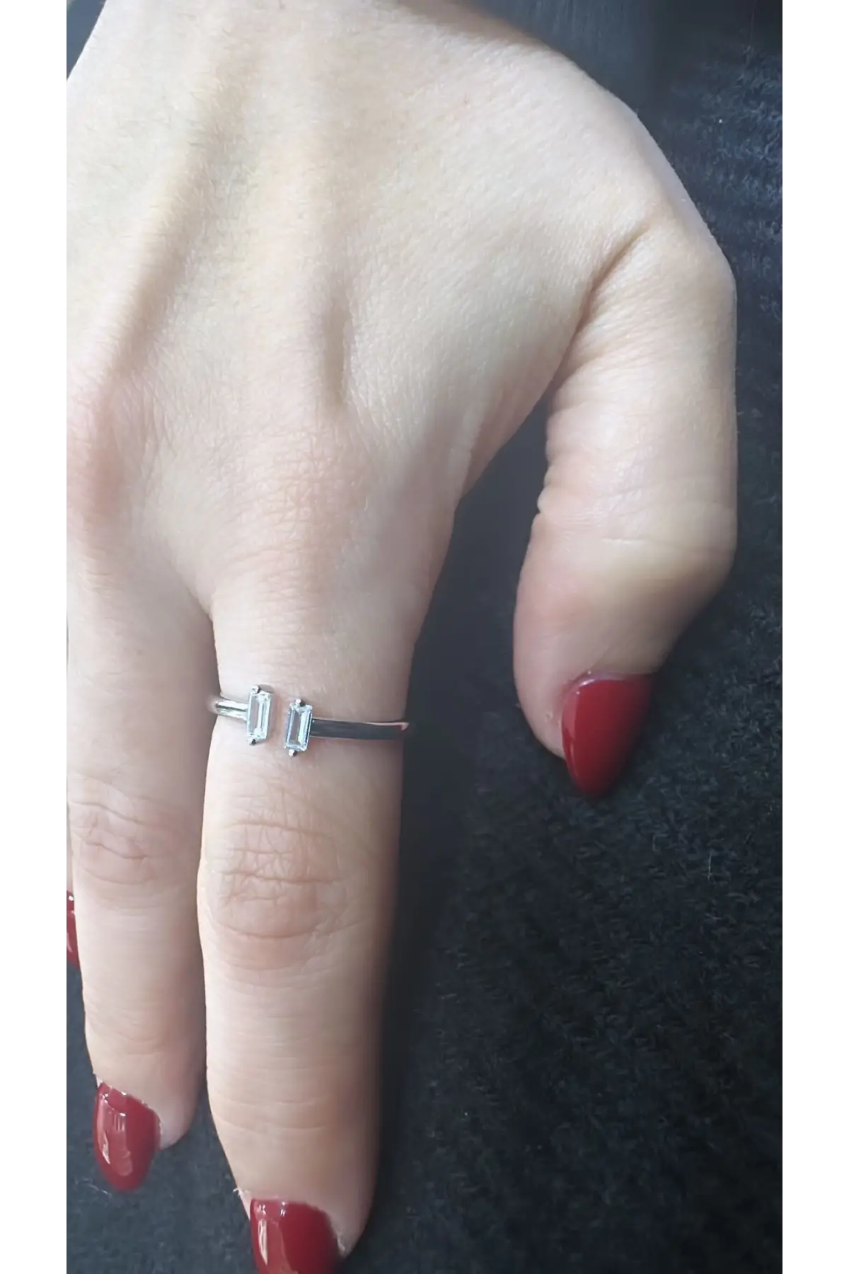 925 Ayar Gümüş Silver İkili Baget Taşlı Yüzük