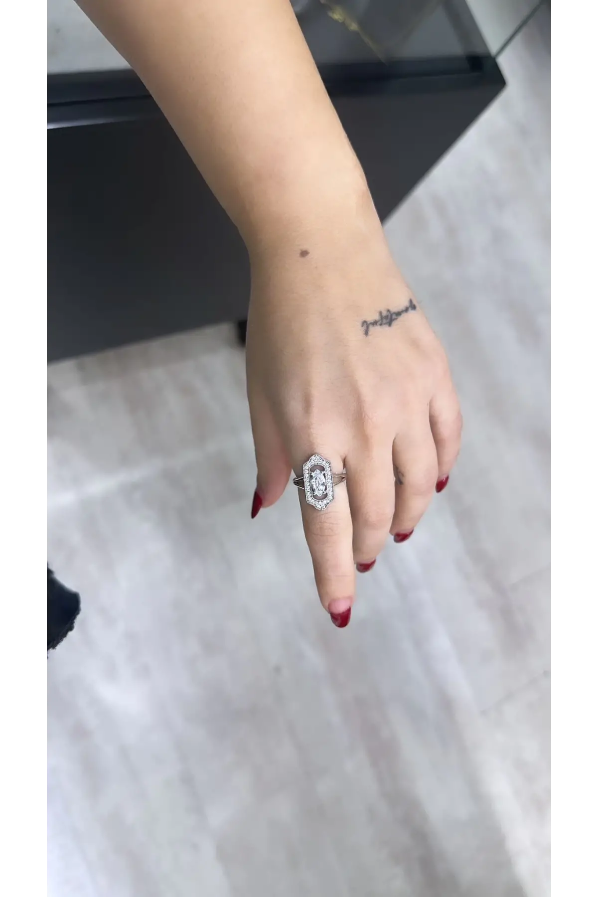 925 Ayar Gümüş İthal Vip Mozanit Taşlı Kare Yüzük