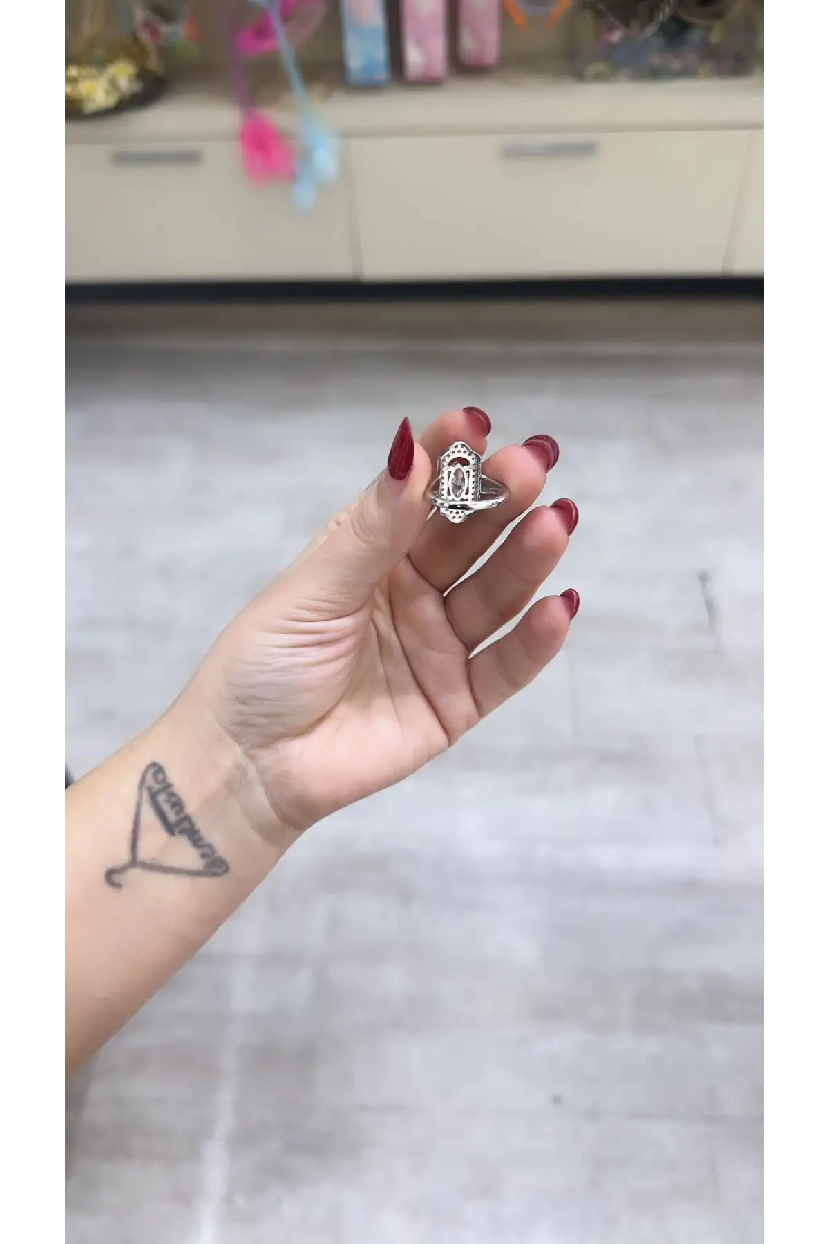 925 Ayar Gümüş Mazonite Kare Damla Taş Vip Yüzük