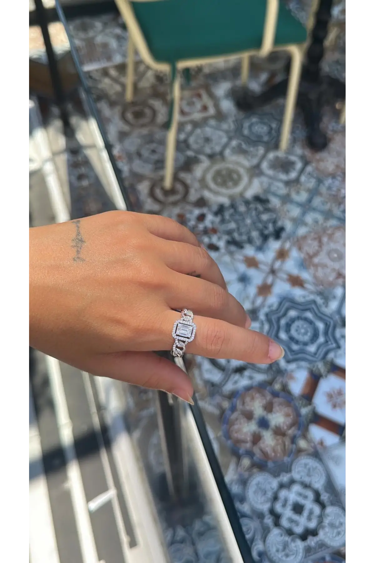 925 Ayar Gümüş Elmas Montür Kare Model Rose Yüzük