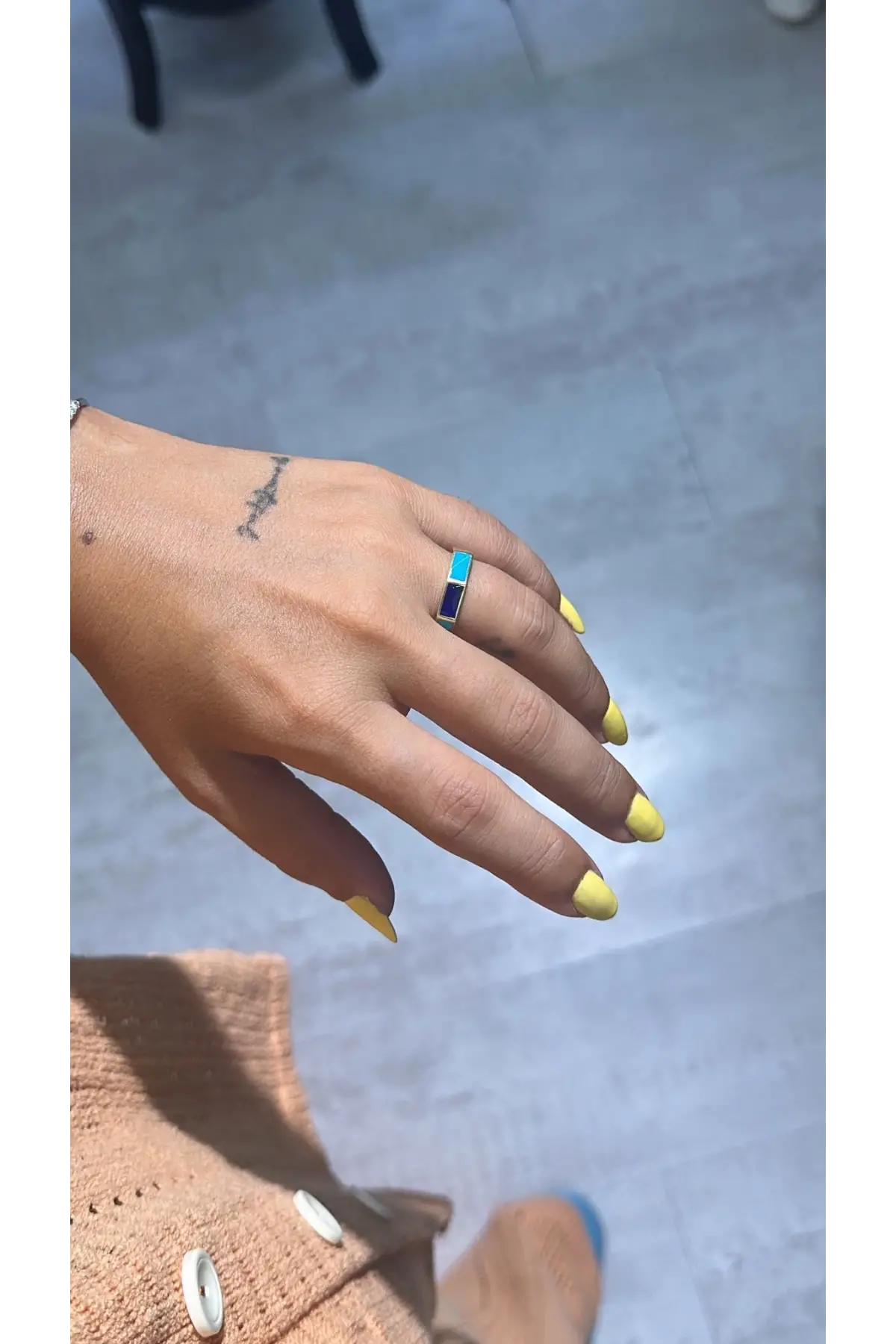 925 Ayar Gümüş Mavi Mineli Taş Detaylı Gold Yüzük