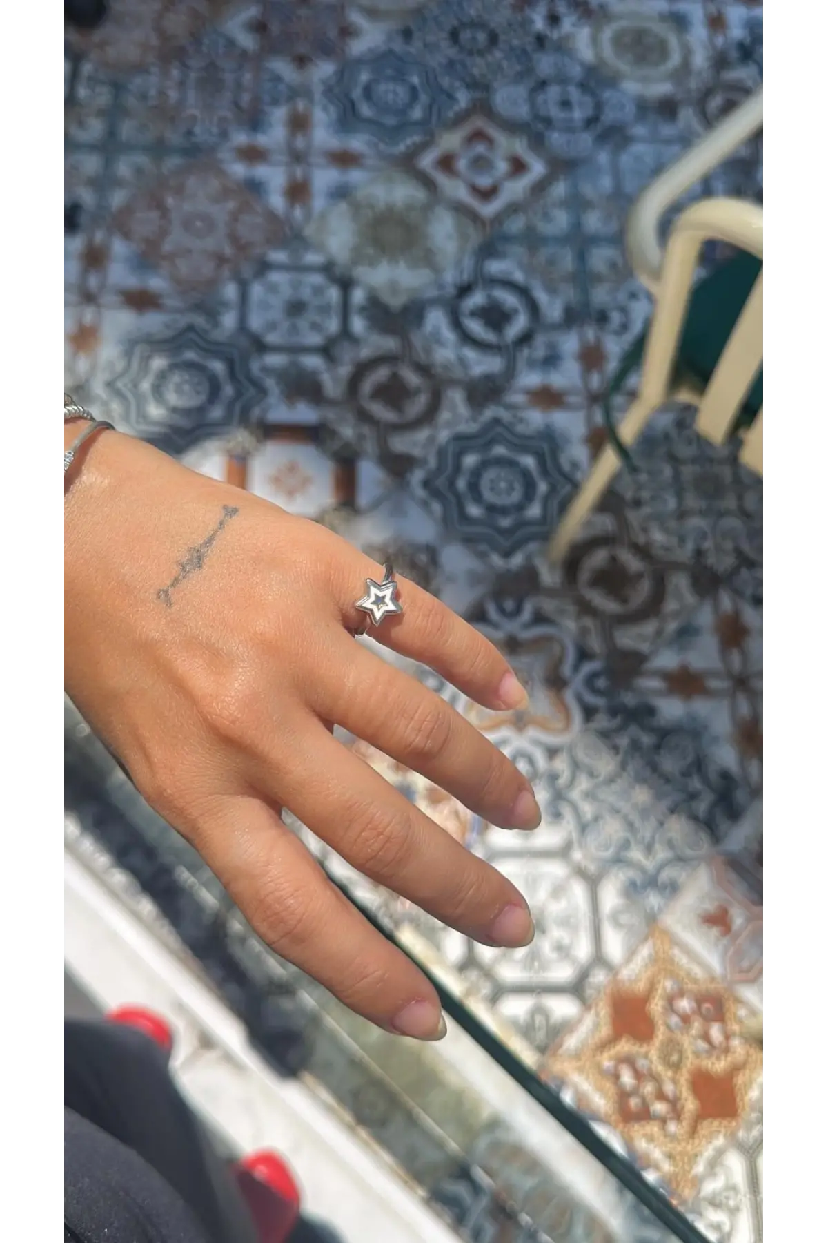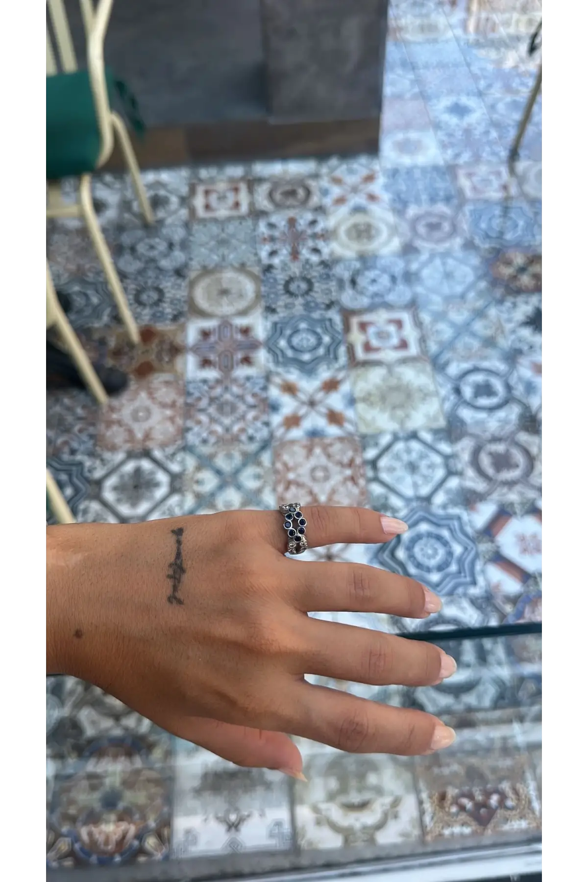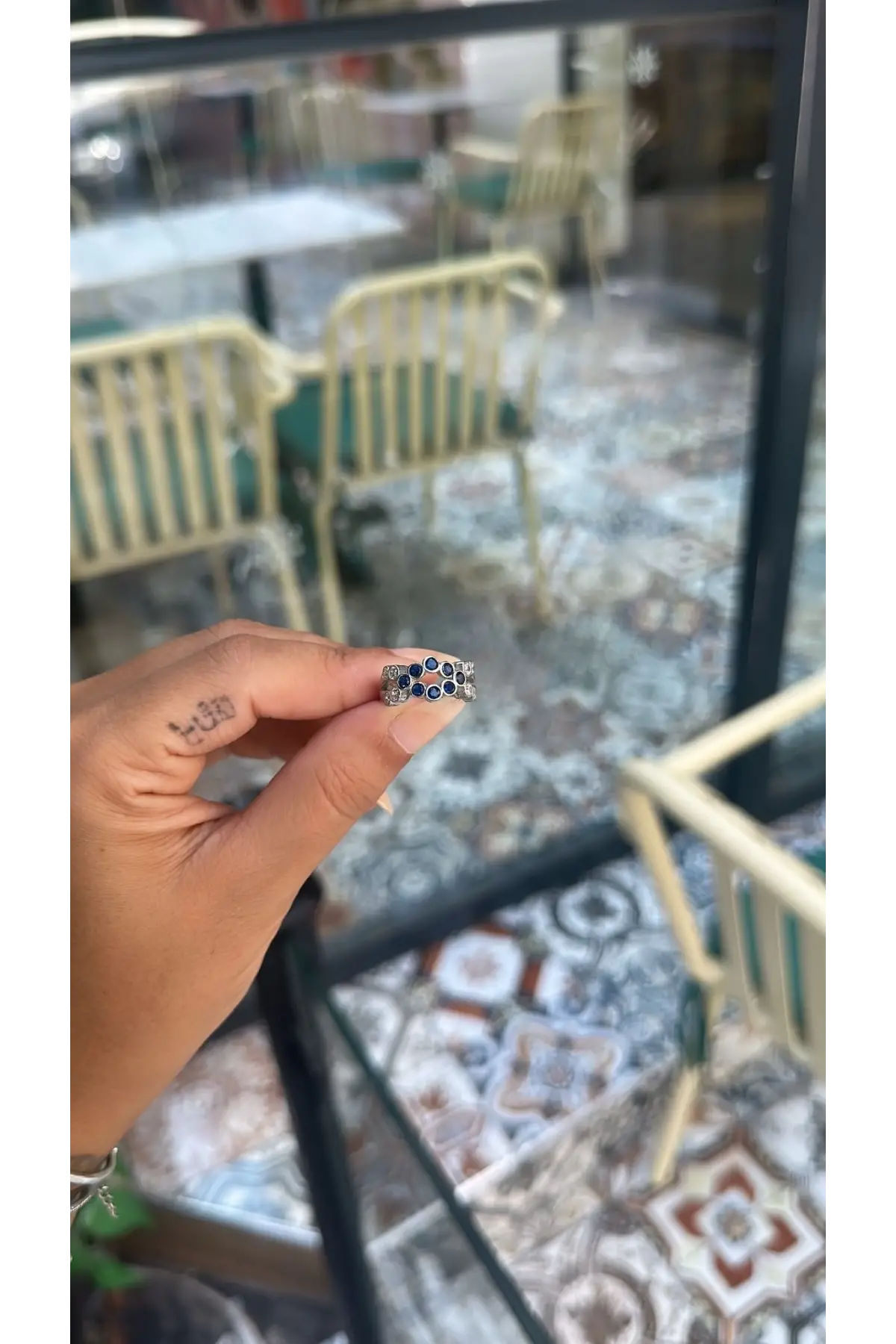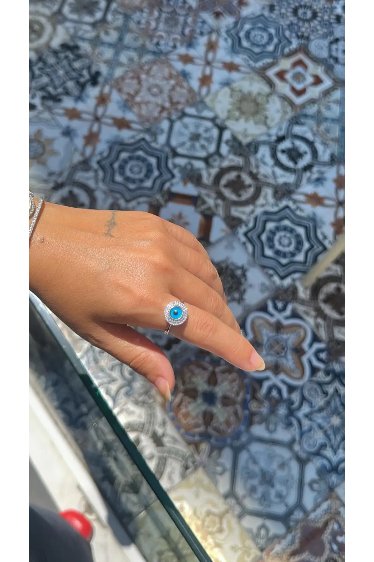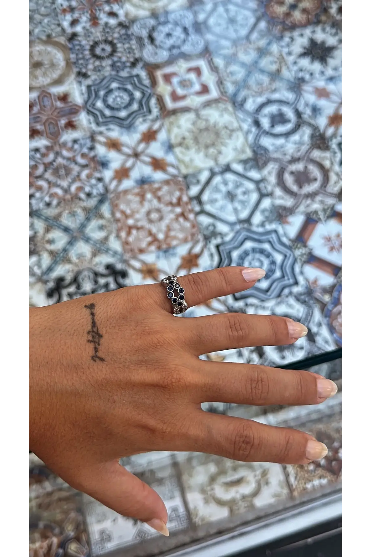 925 Ayar Gümüş Mavi Boncuk Taşlı Küçük Taş Geçişli Silver Yüzük