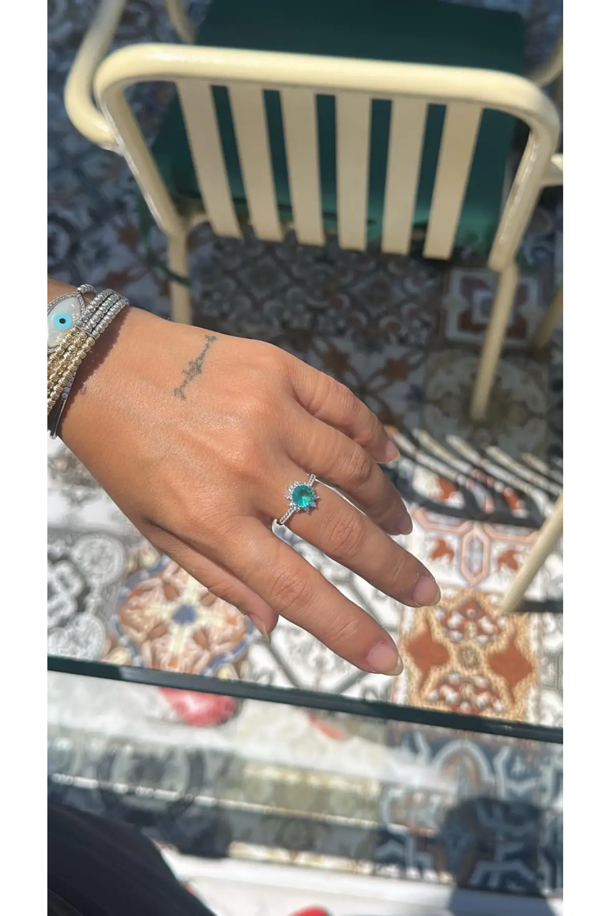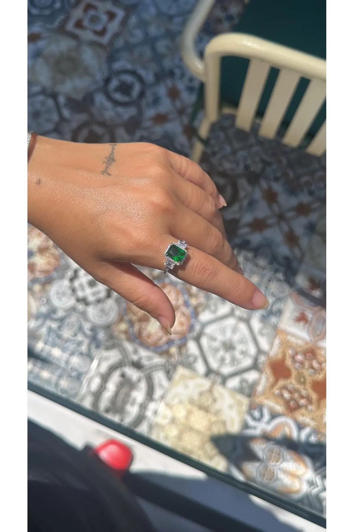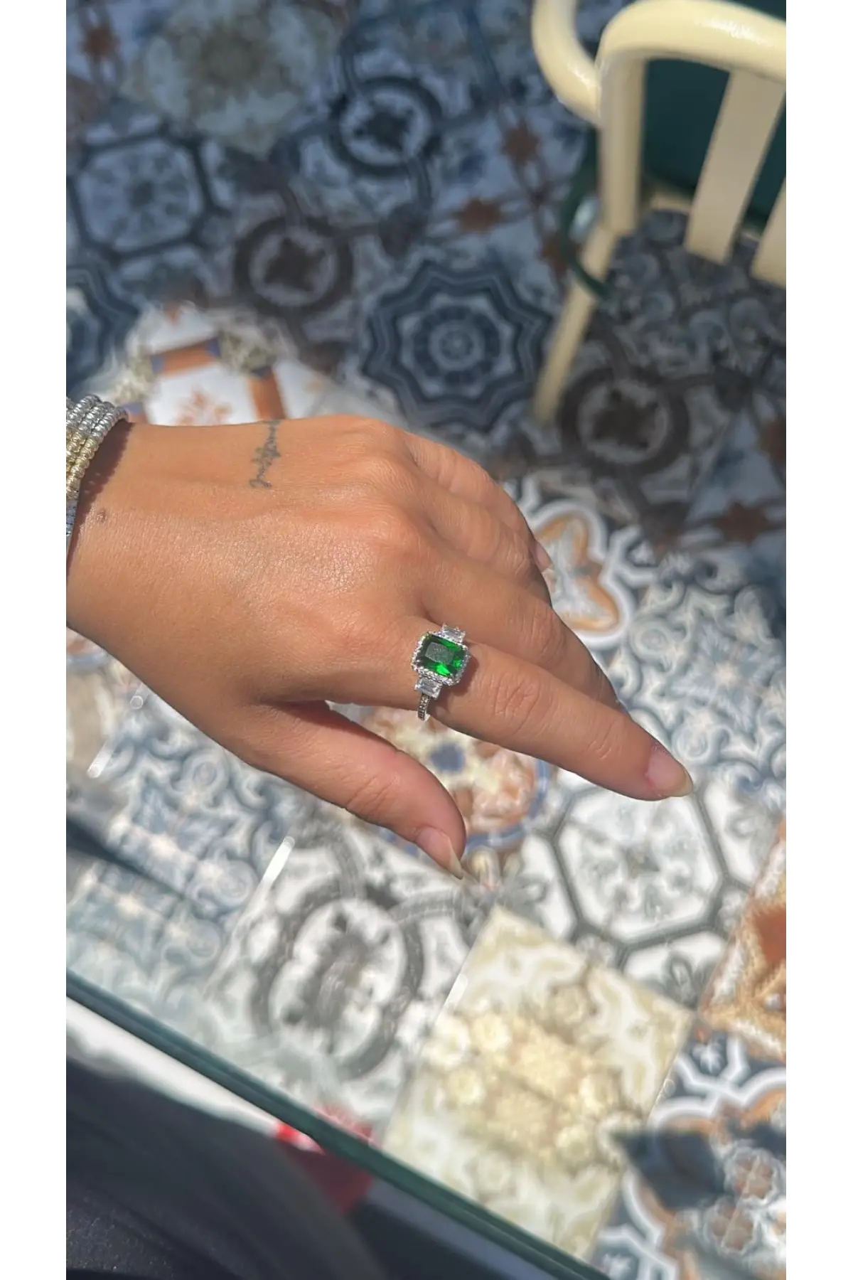 925 Ayar Gümüş Yeşil Taşlı İthal Yüzük