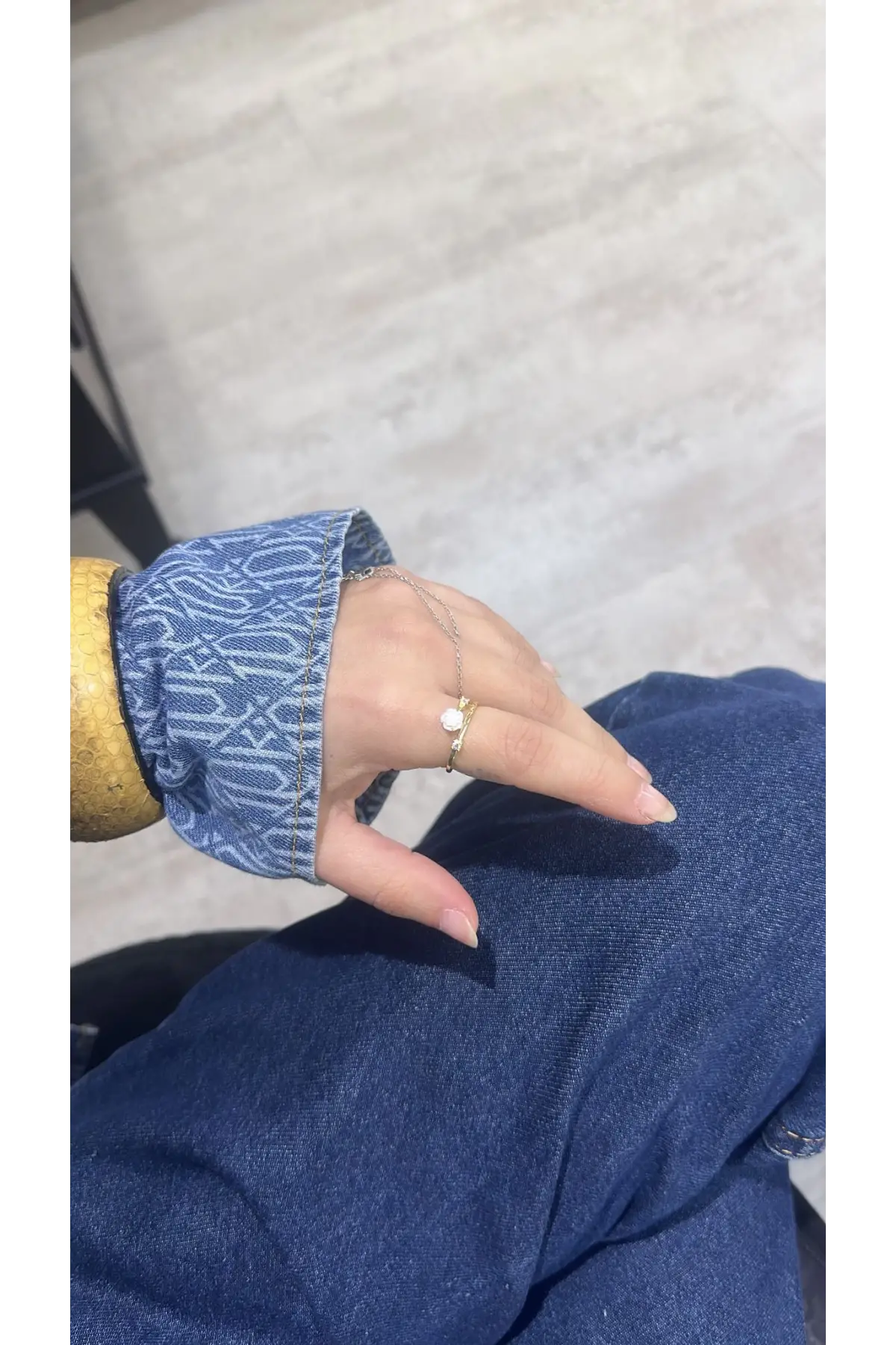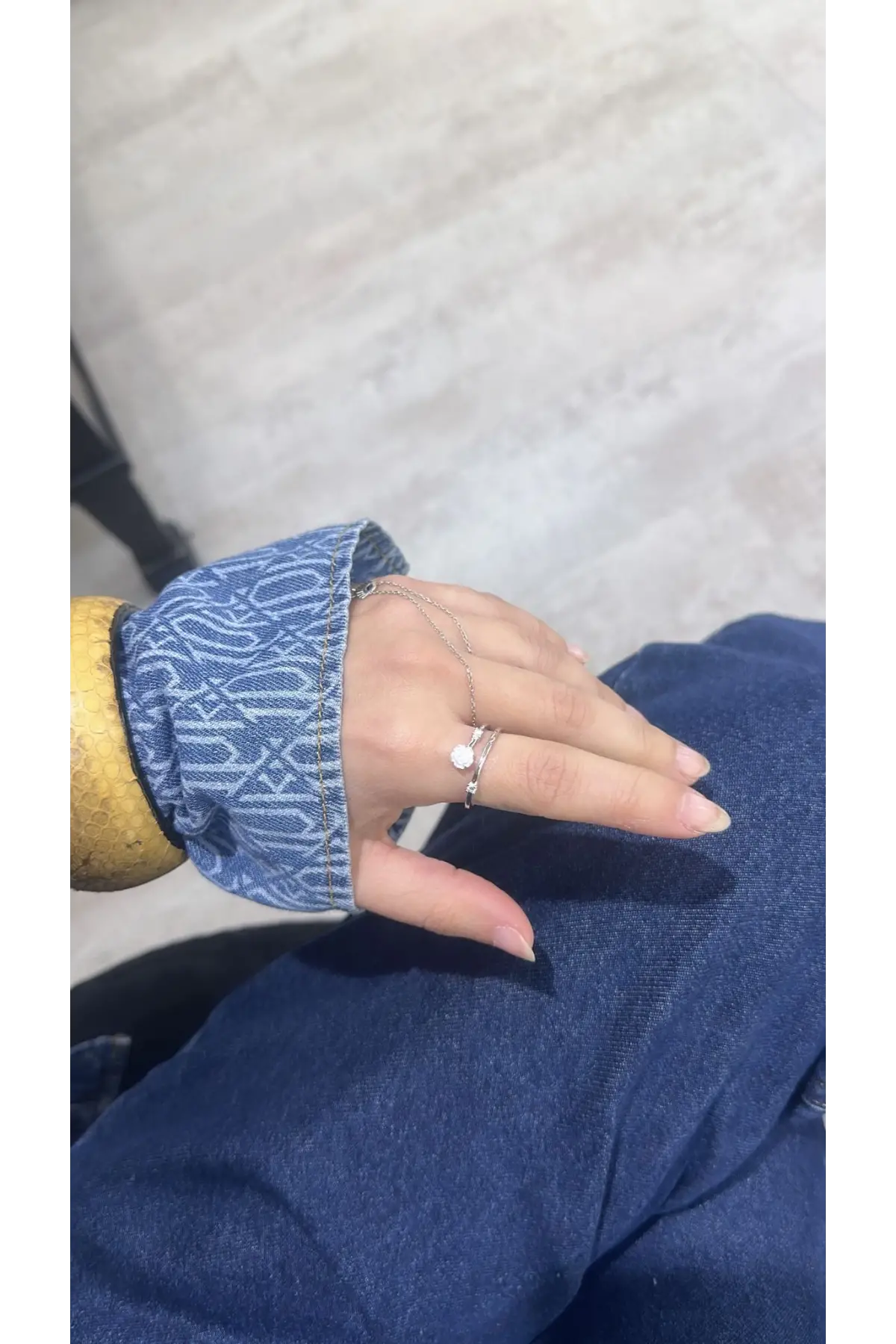 925 Ayar Gümüş Halka Geçişli Taşlı Gold Yüzük