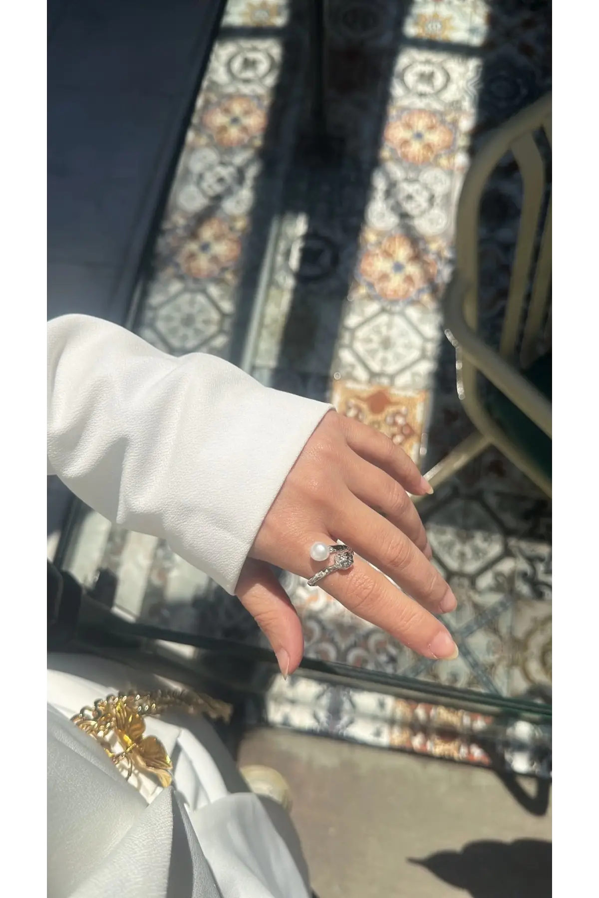 925 Ayar Gümüş İnci Detay Top Model Silver Yüzük