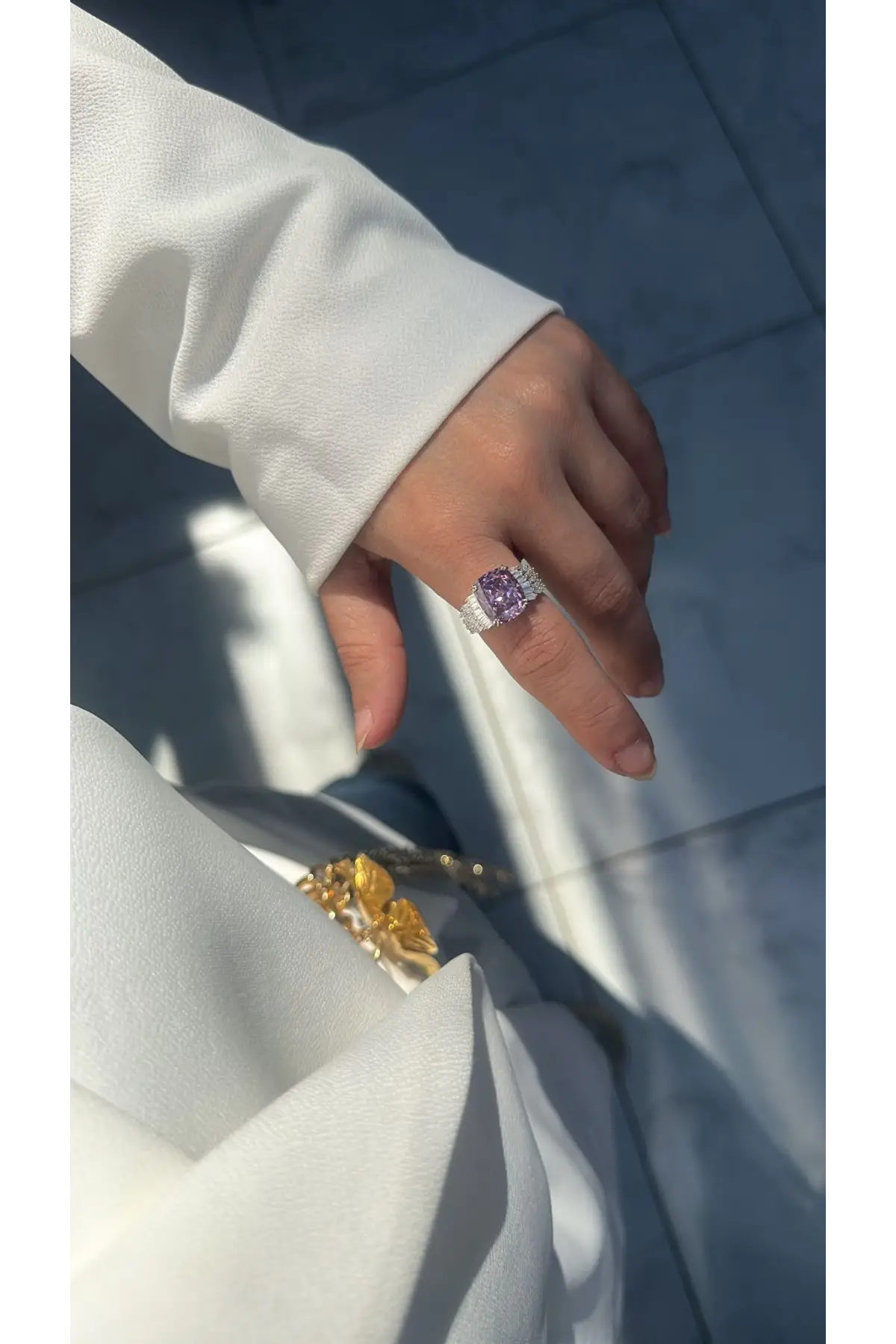 925 Ayar Gümüş Alexandrite Renkli Taşlı İthal Vip Yüzük