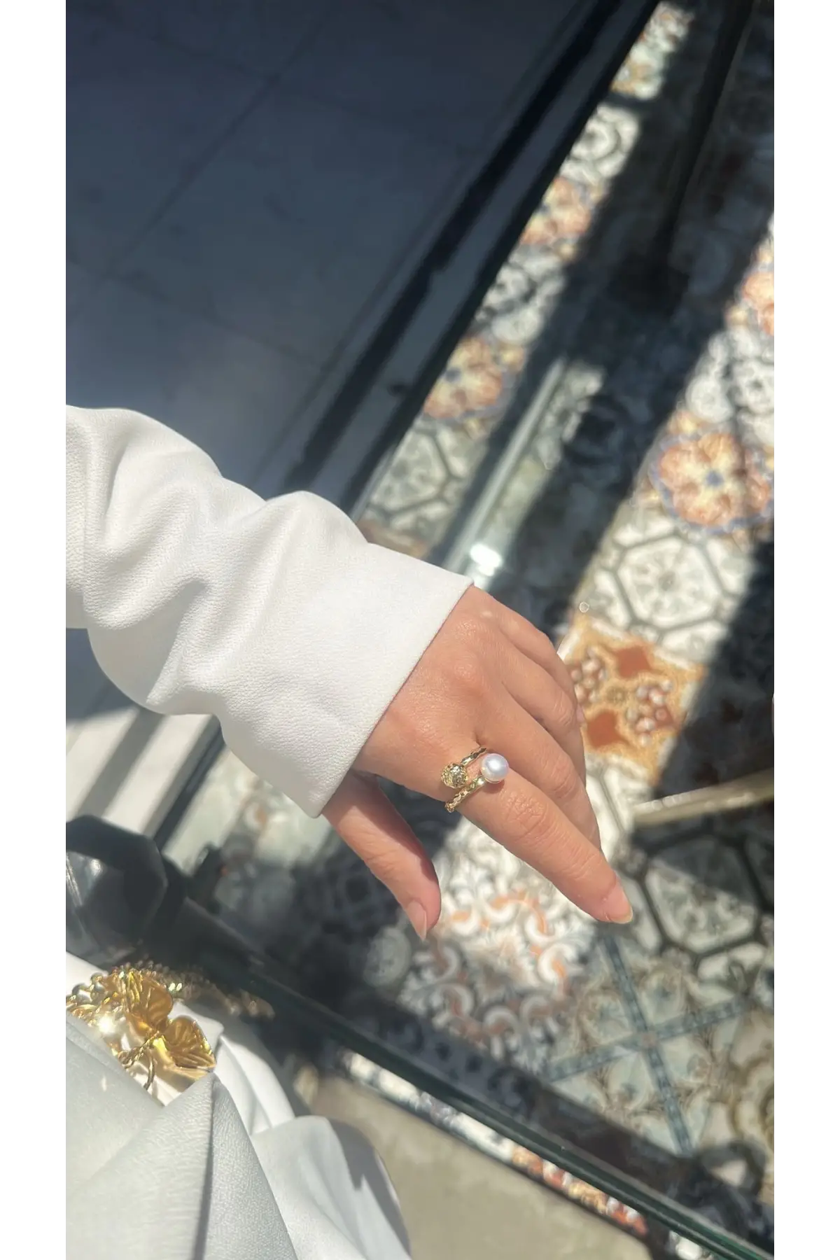 925 Ayar Gümüş İnci Detay Top Model Yüzük