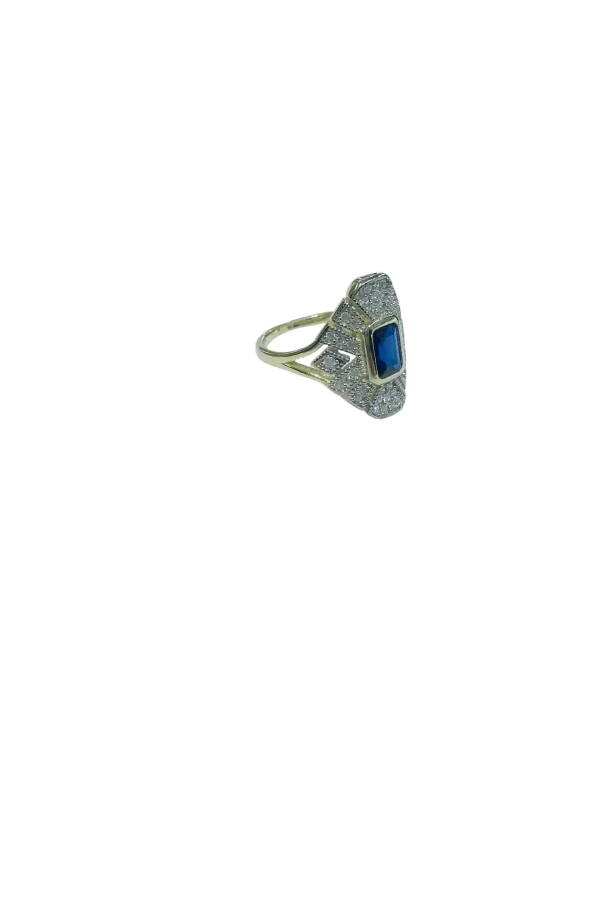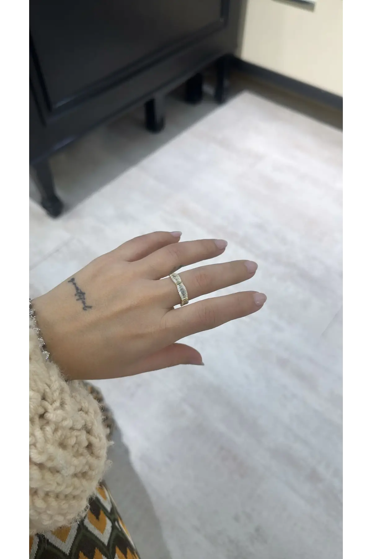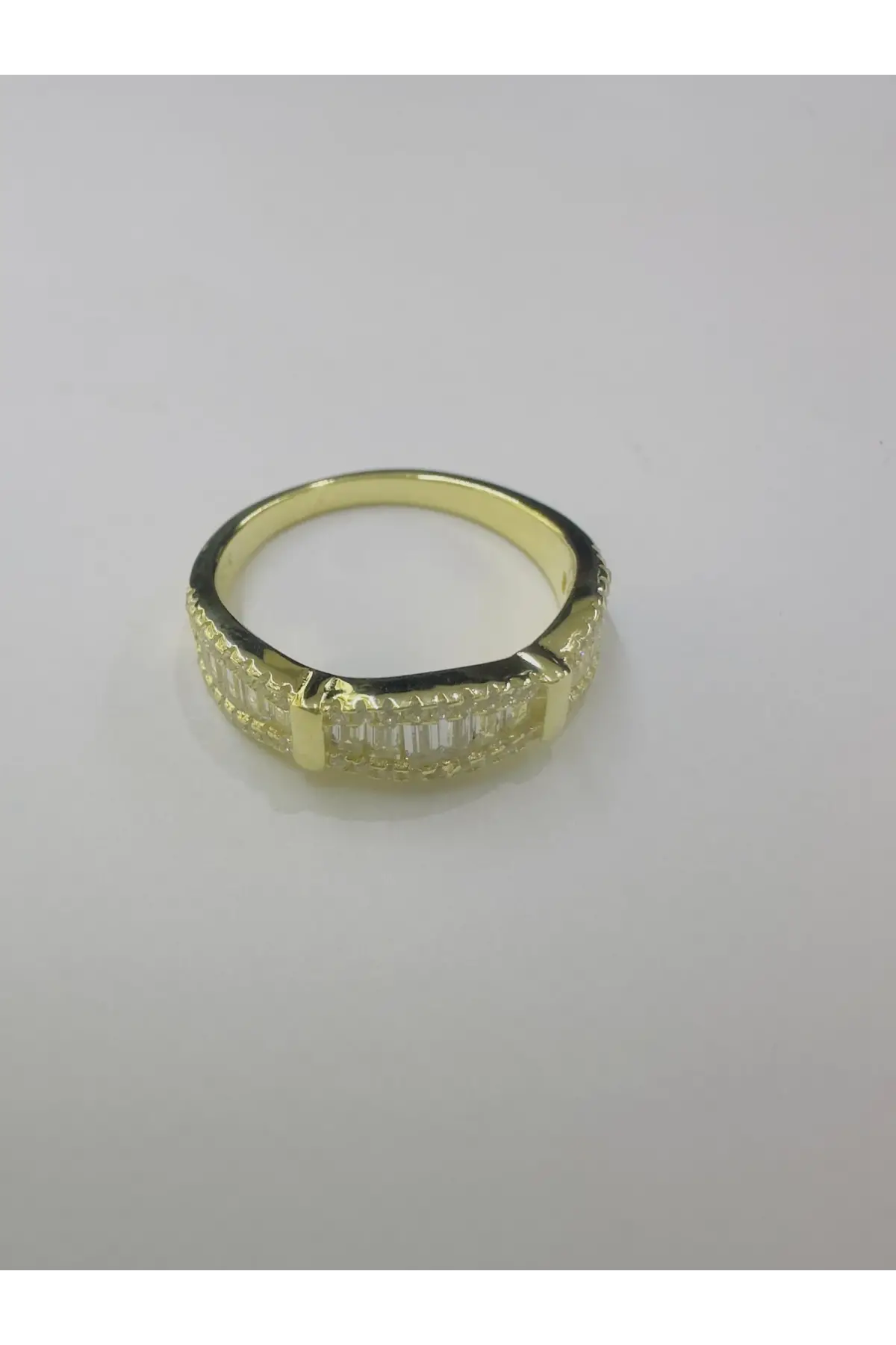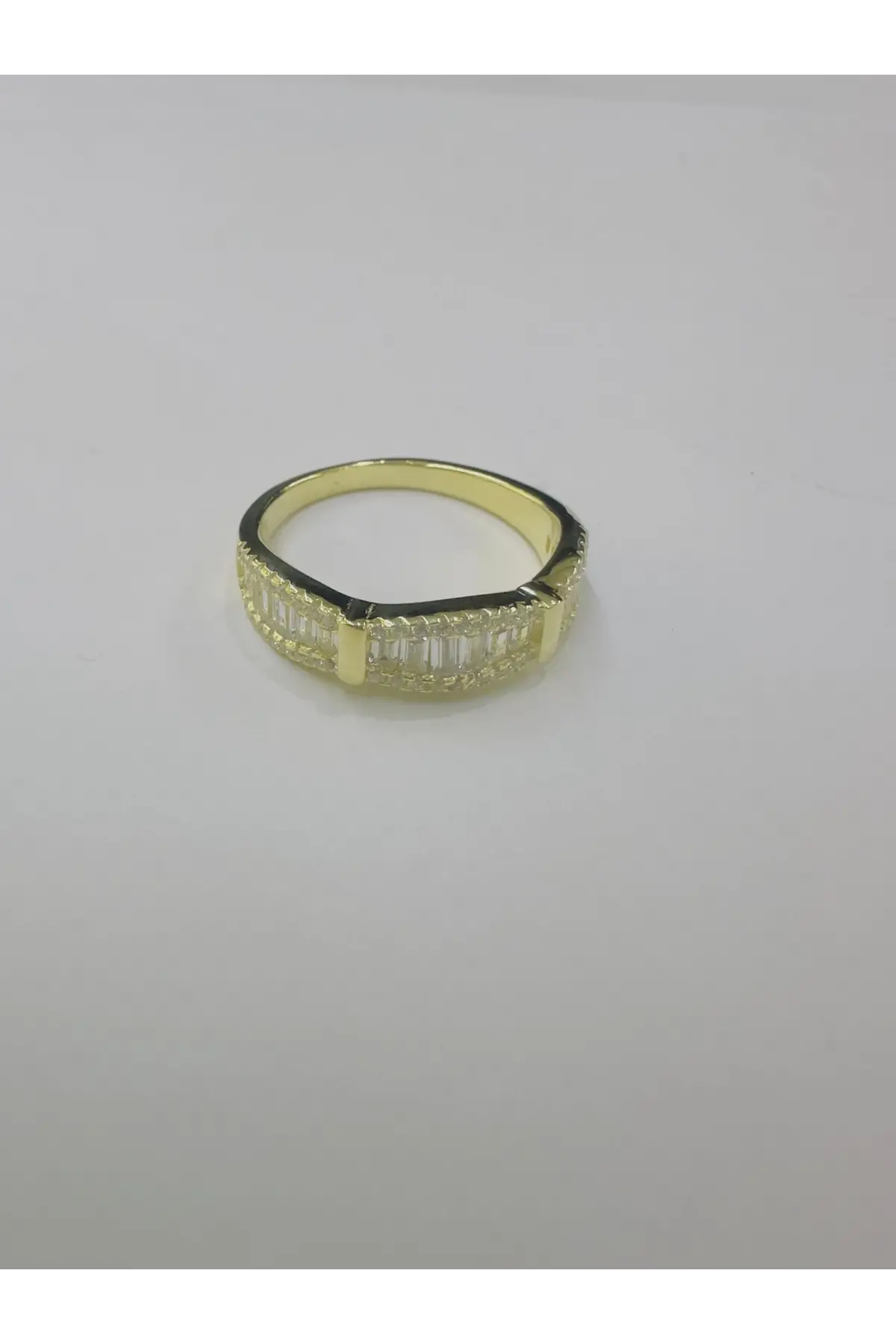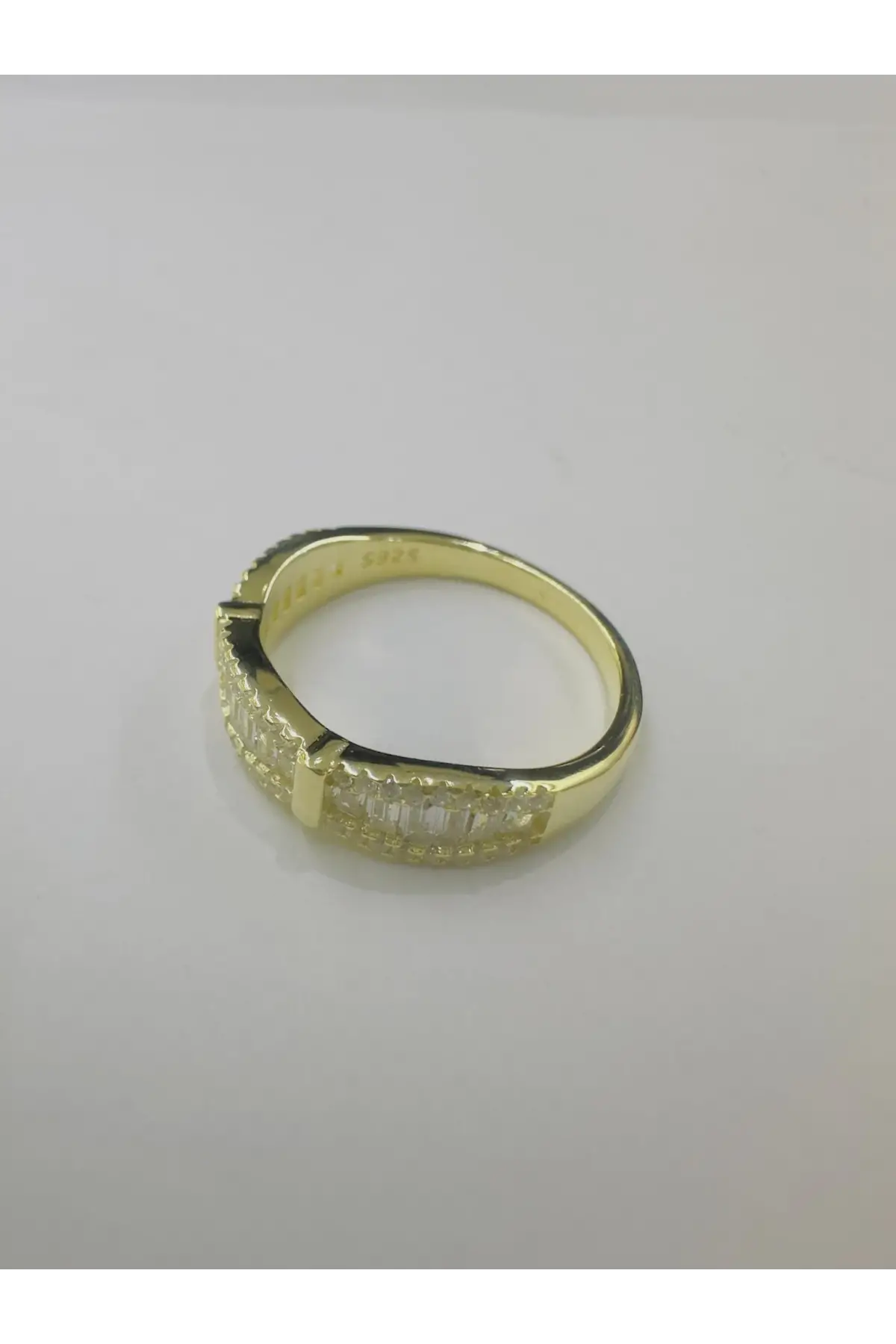 925 Ayar Gümüş Baget Taşlı Gold Yüzük