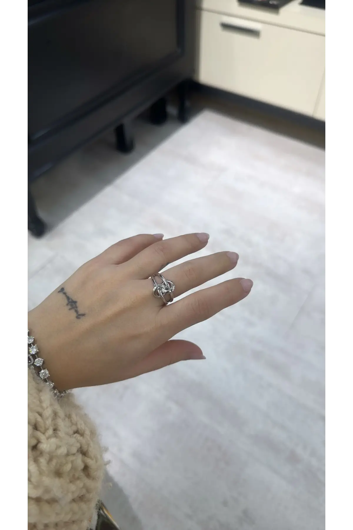 925 Ayar Gümüş İçiçe Geçişli Taşsız Silver Yüzük