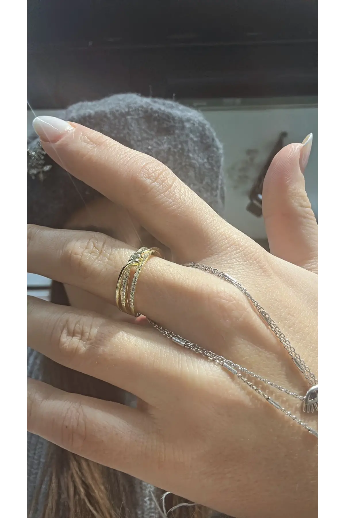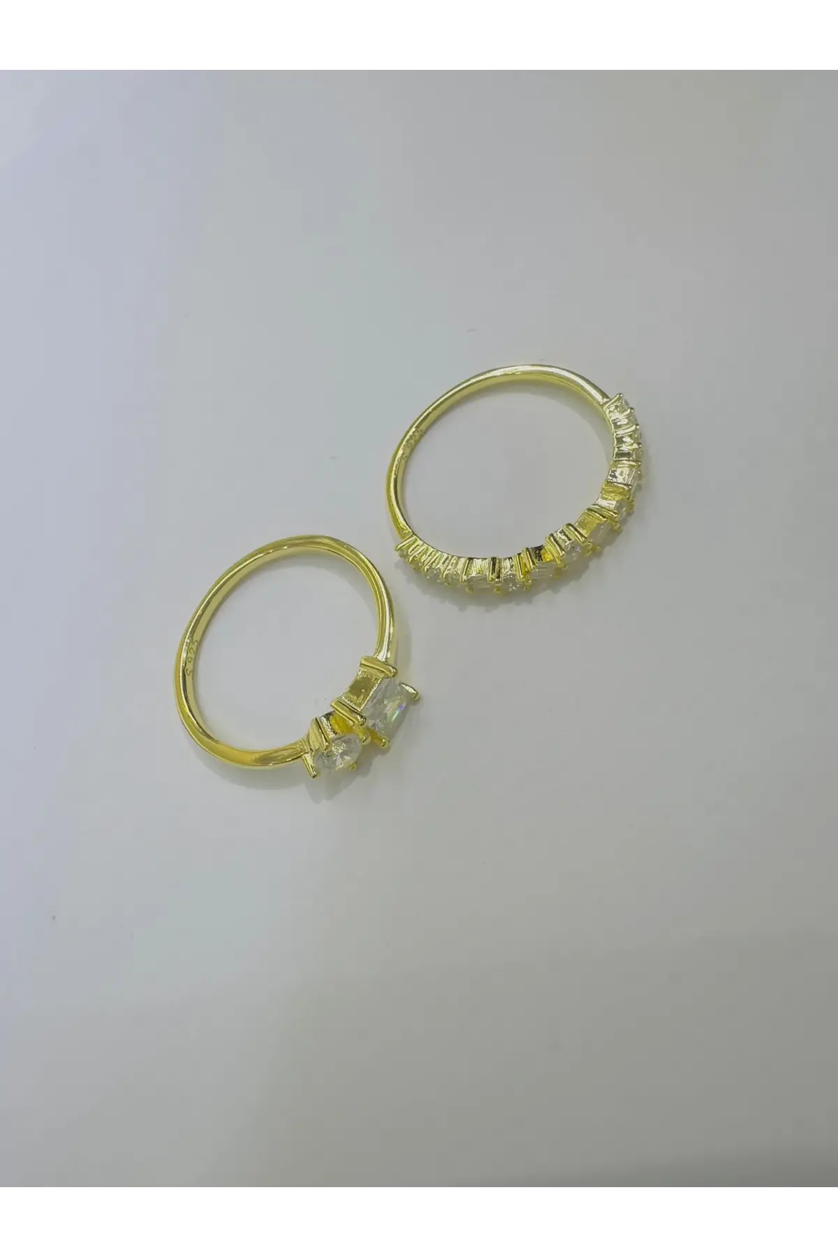925 Ayar Gümüş Gold/Silver Renk 2' li Halka Yüzük