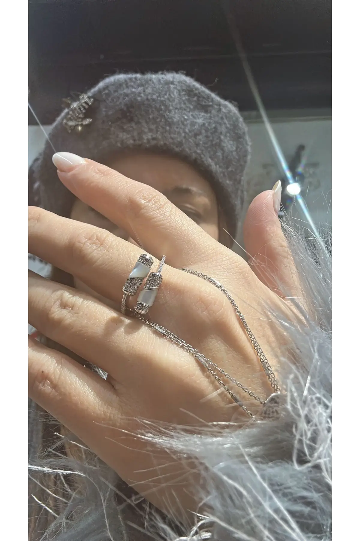 925 Ayar Gümüş Sedef Taşlı Yüzük