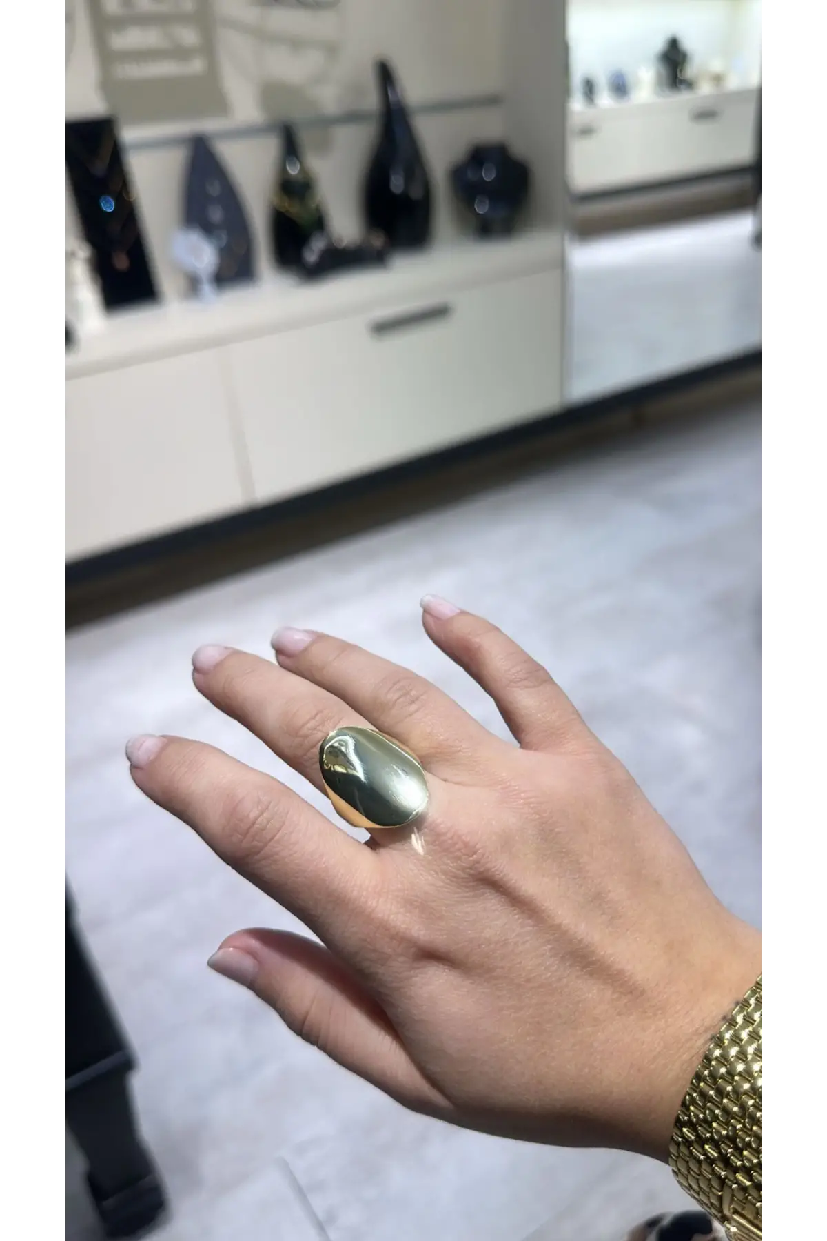 925 Ayar Gümüş Oval Baget Taş Gold Yüzük