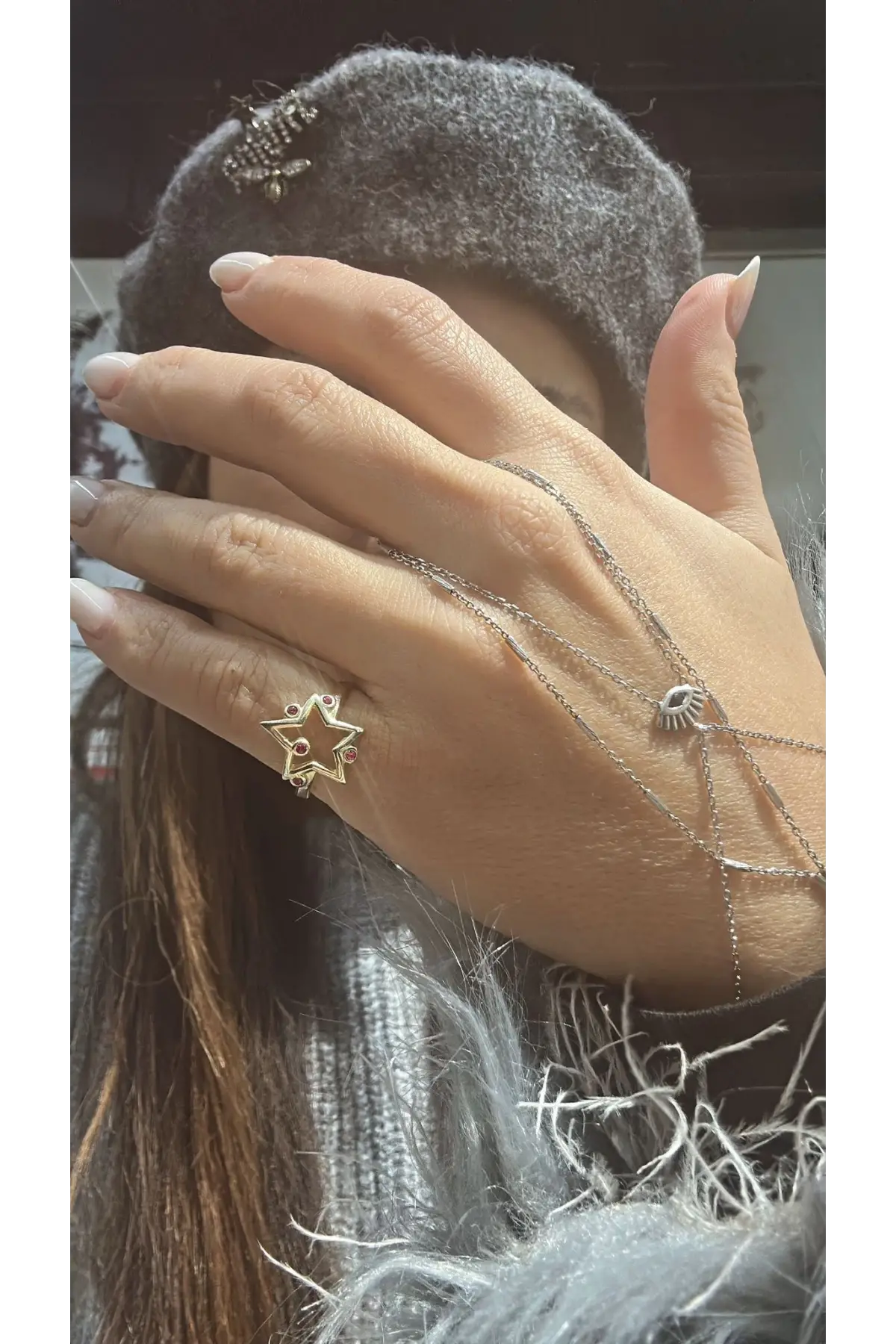 925 Ayar Gümüş Yıldız Borda Taş Yüzük
