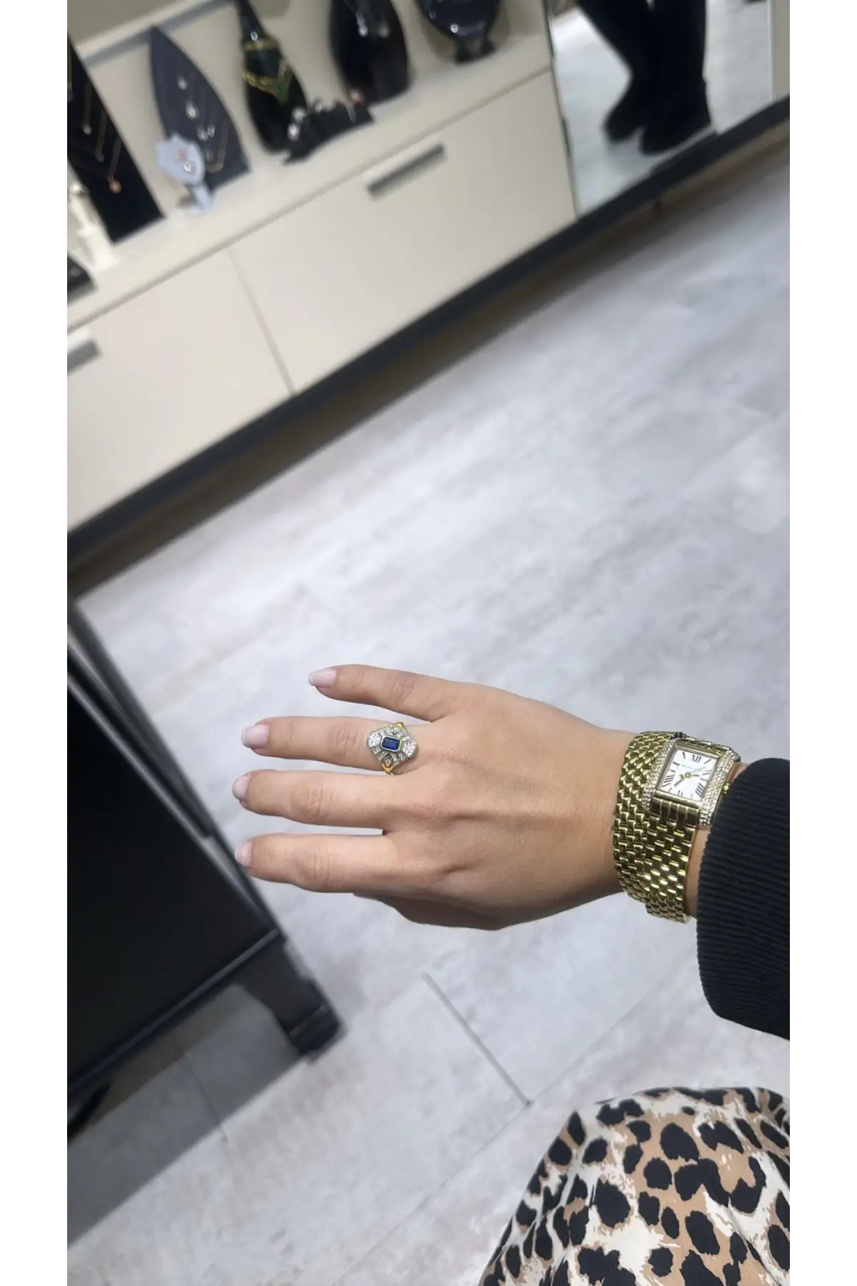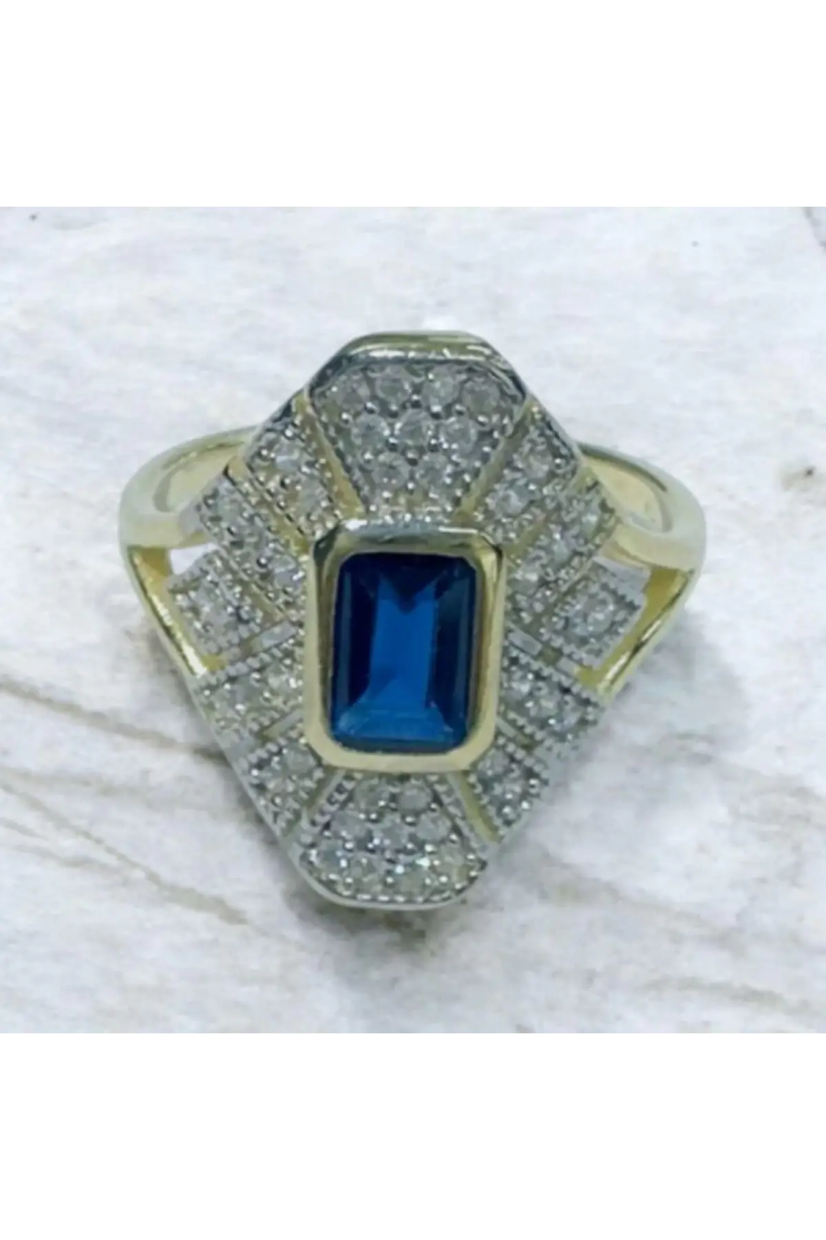 925 Ayar Gümüş Gold Lacivert Renk Geçişli Yüzük