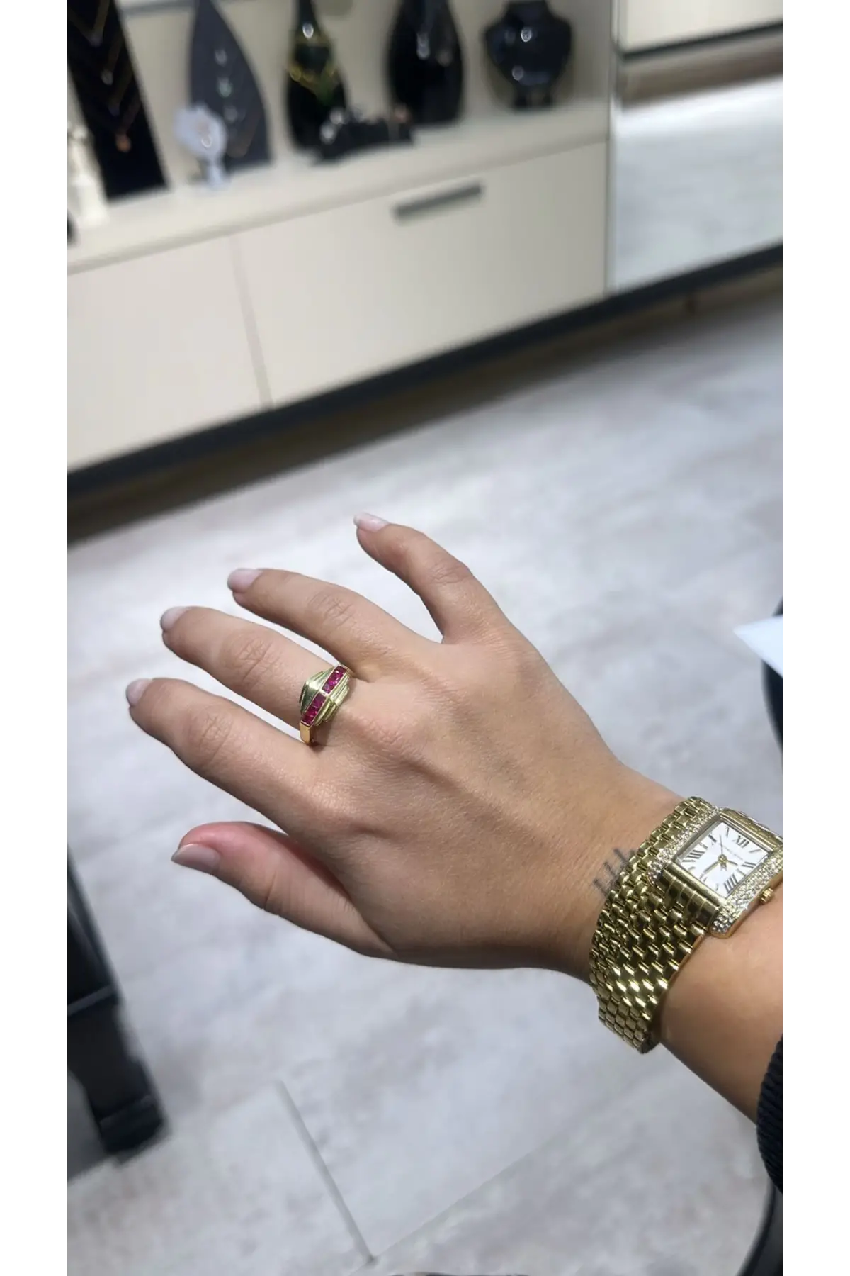 925 Ayar Gümüş Gold Bordo Renk Geçişli Yüzük