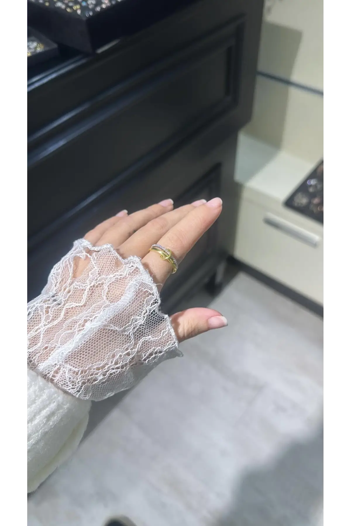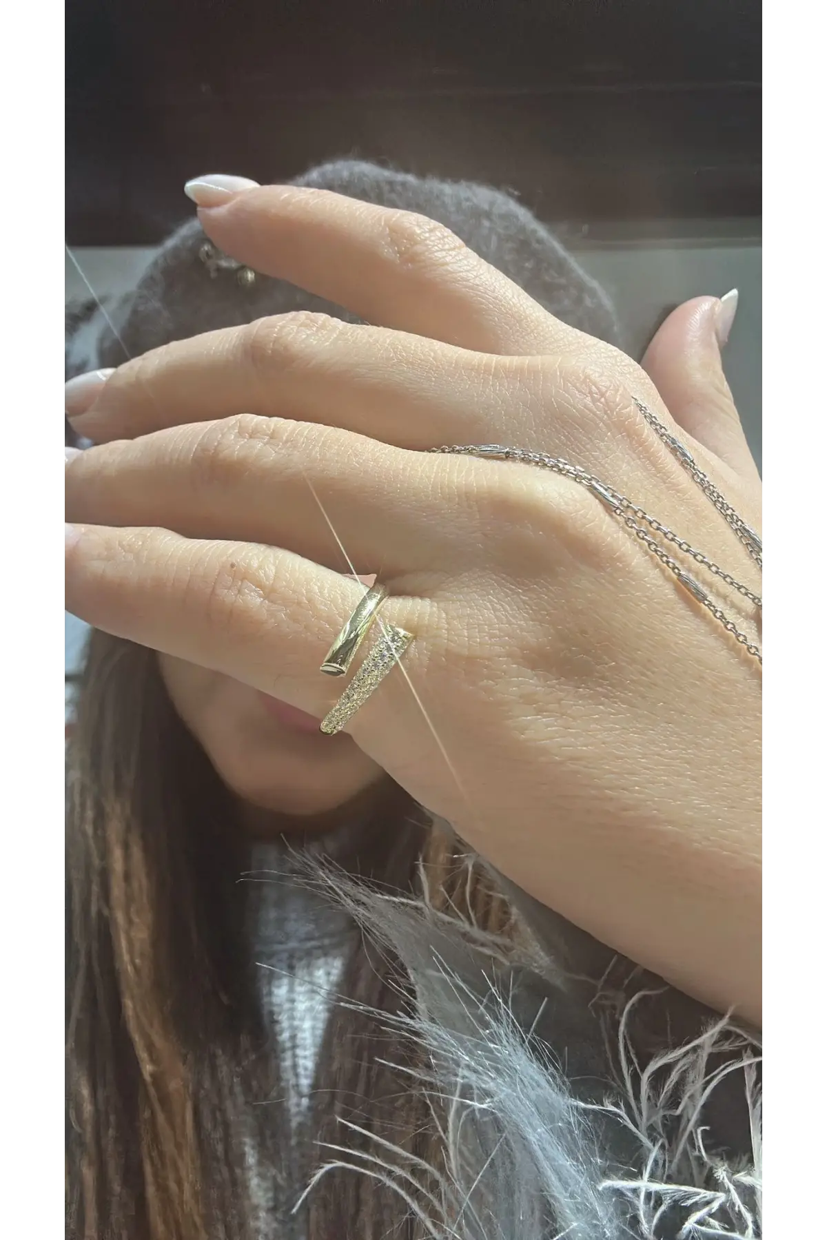 925 Ayar Gümüş İkili Tek Taş Yarım Tur Gold Yüzük