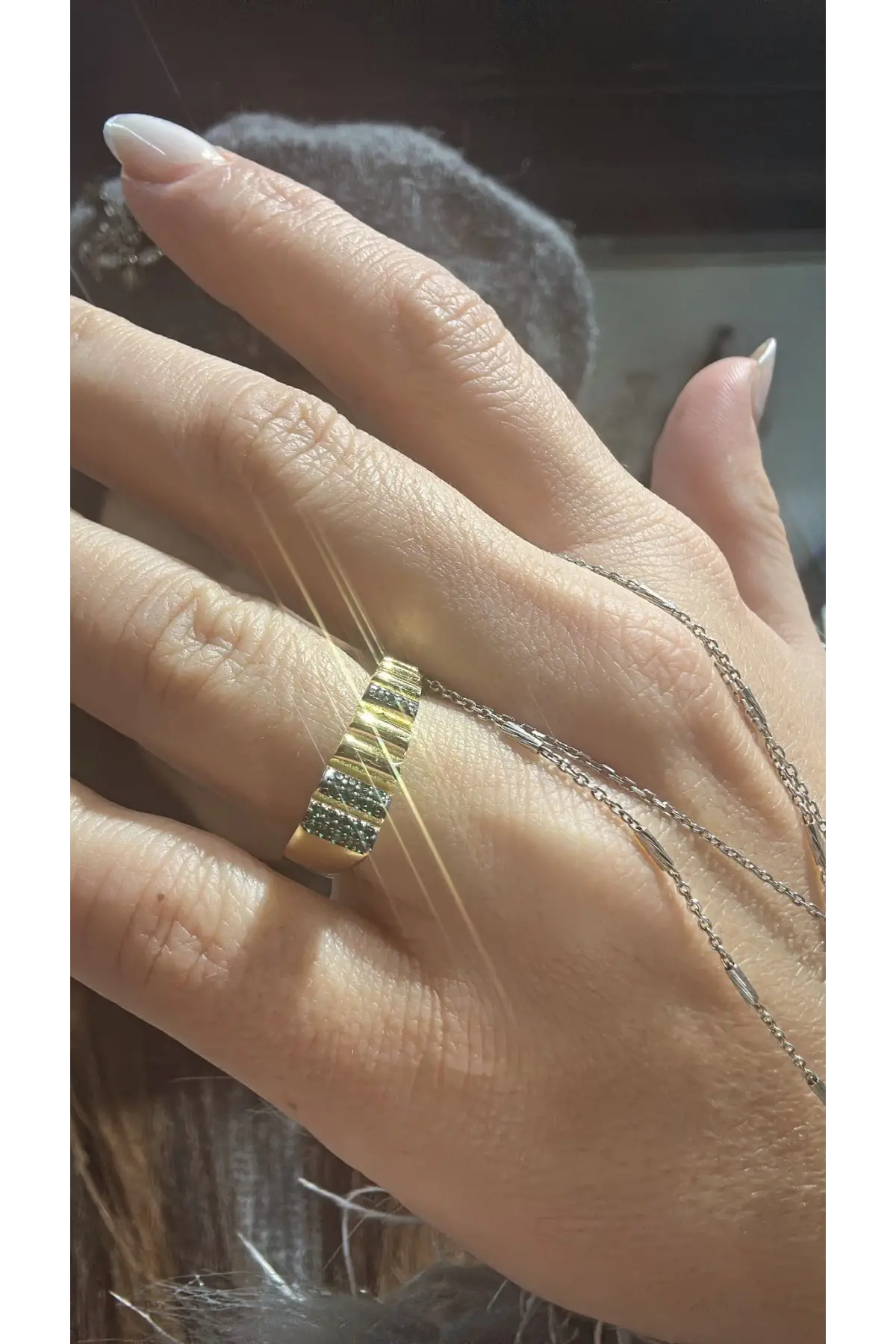 925 Ayar Gümüş İkili Sıra Taşlı Gold Yüzük