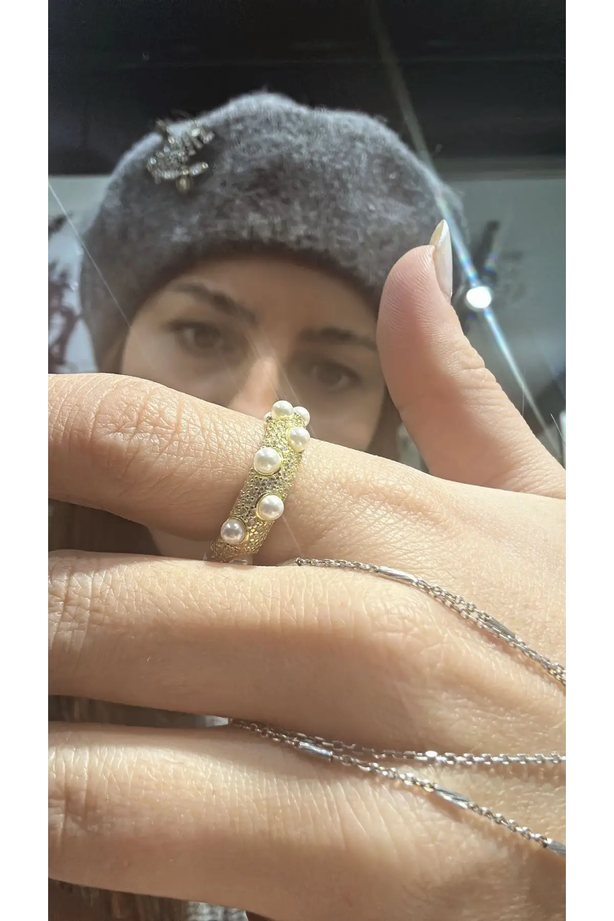 925 Ayar Gümüş İncili Taşlı Gold Yüzük