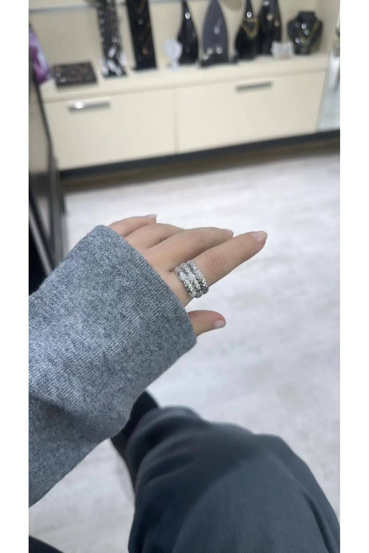 925 Ayar Gümüş Silver Renk 3' lü Halka Yüzük