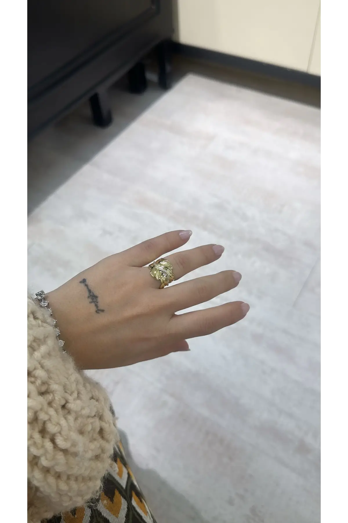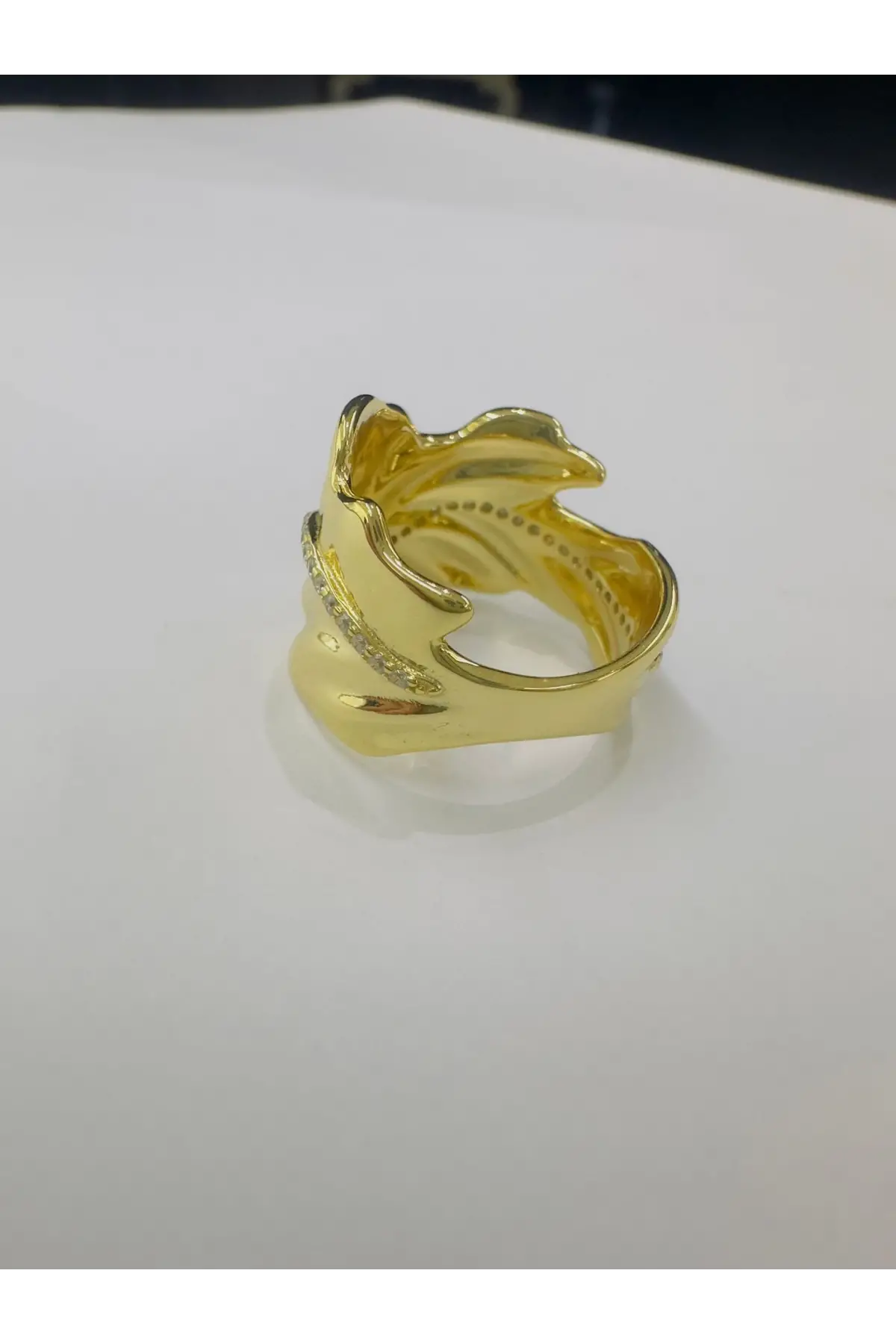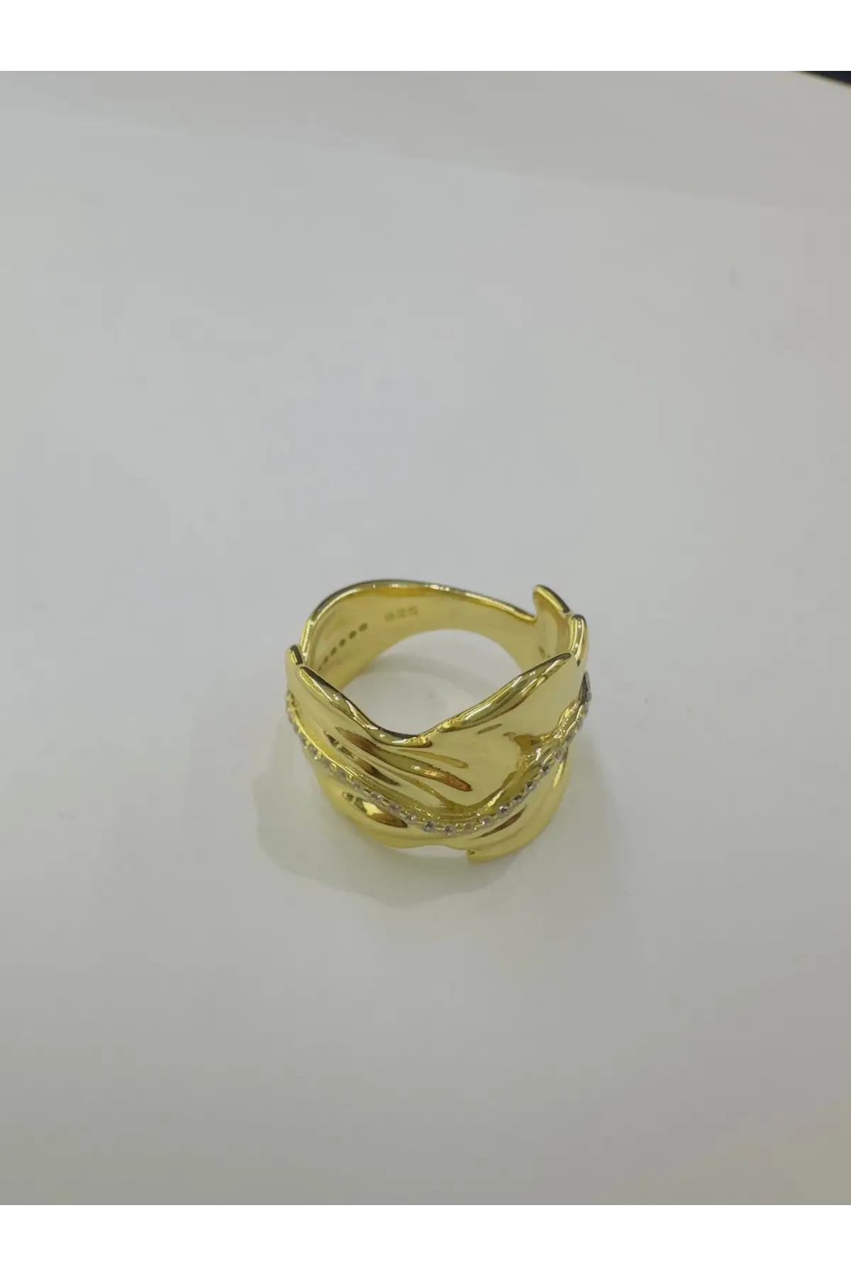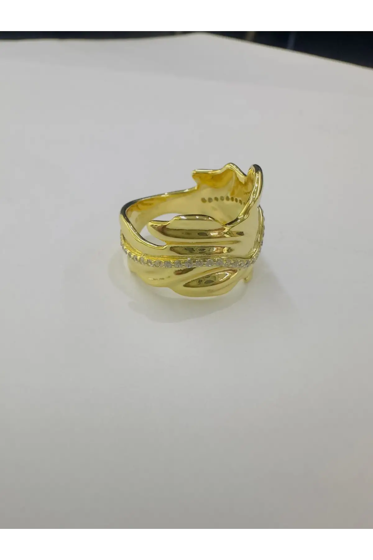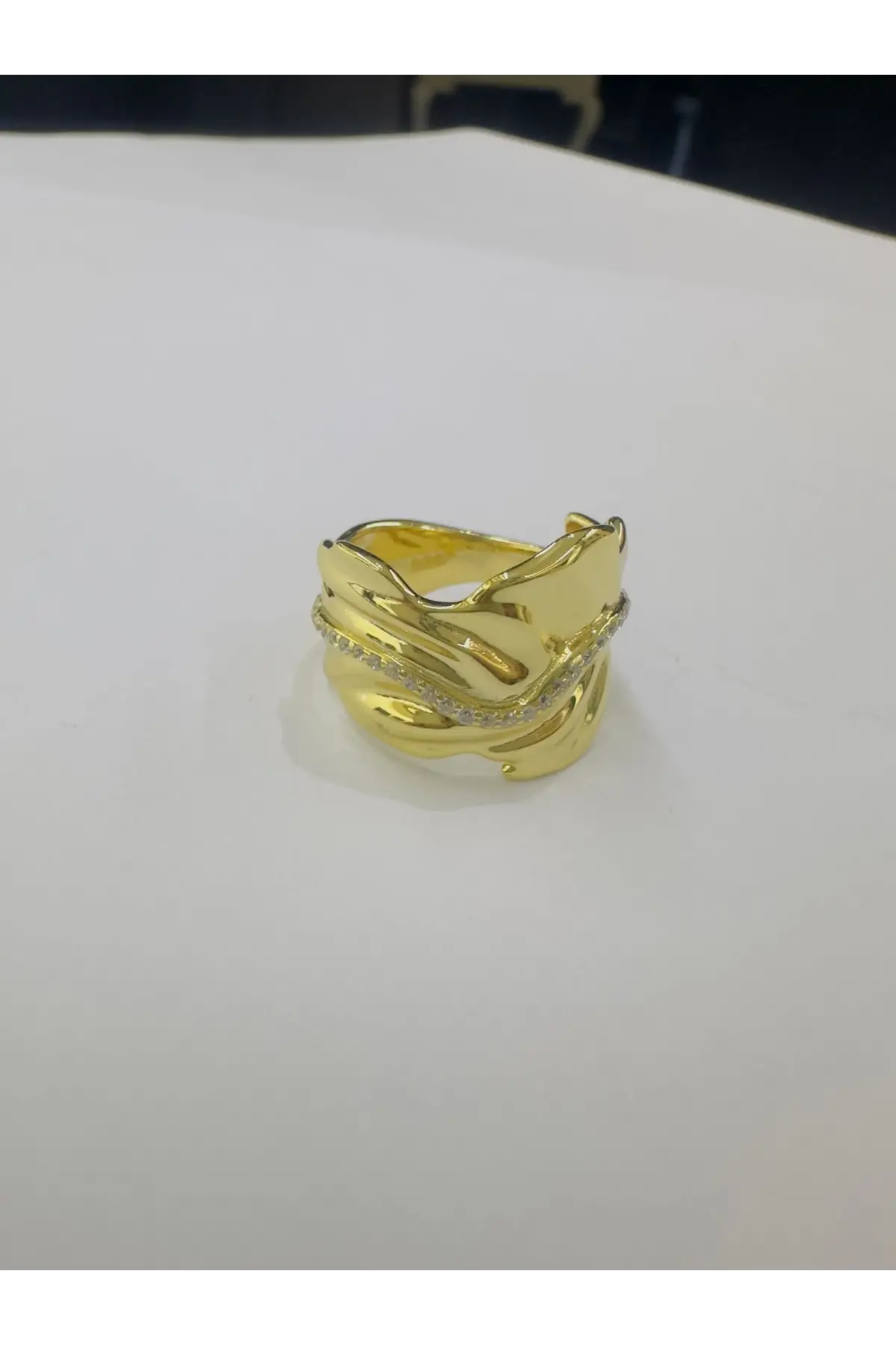 925 Ayar Gümüş Ara Taşlı Dalga Geçişli Gold Yüzük
