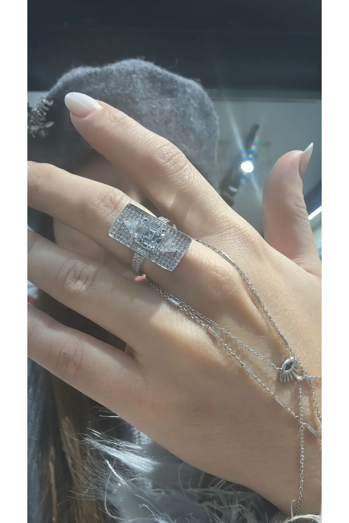 925 Ayar Gümüş Köşeli Baget Taşlı Yüzük