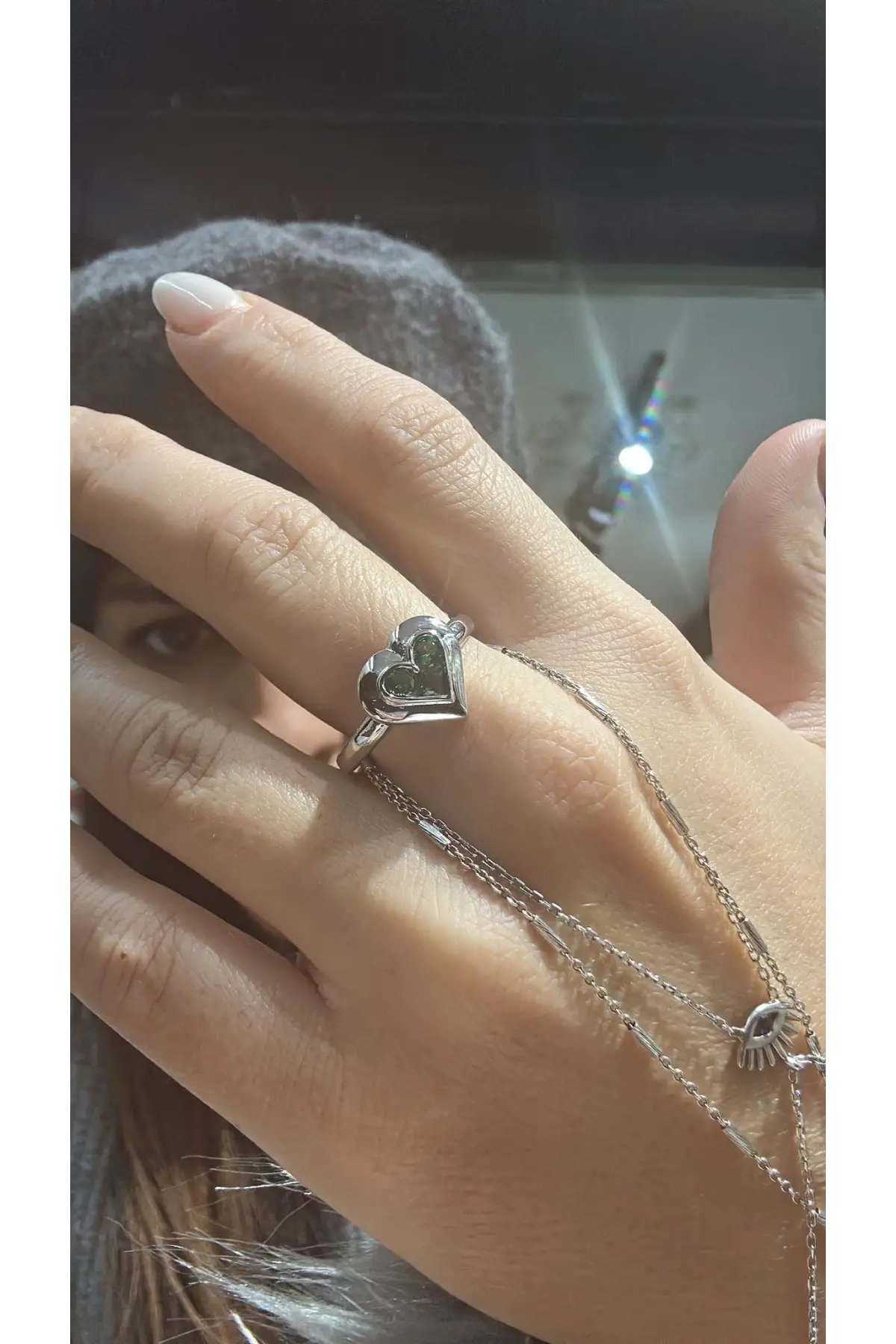 925 Ayar Gümüş Yeşil Taşlı Kalp Yüzük